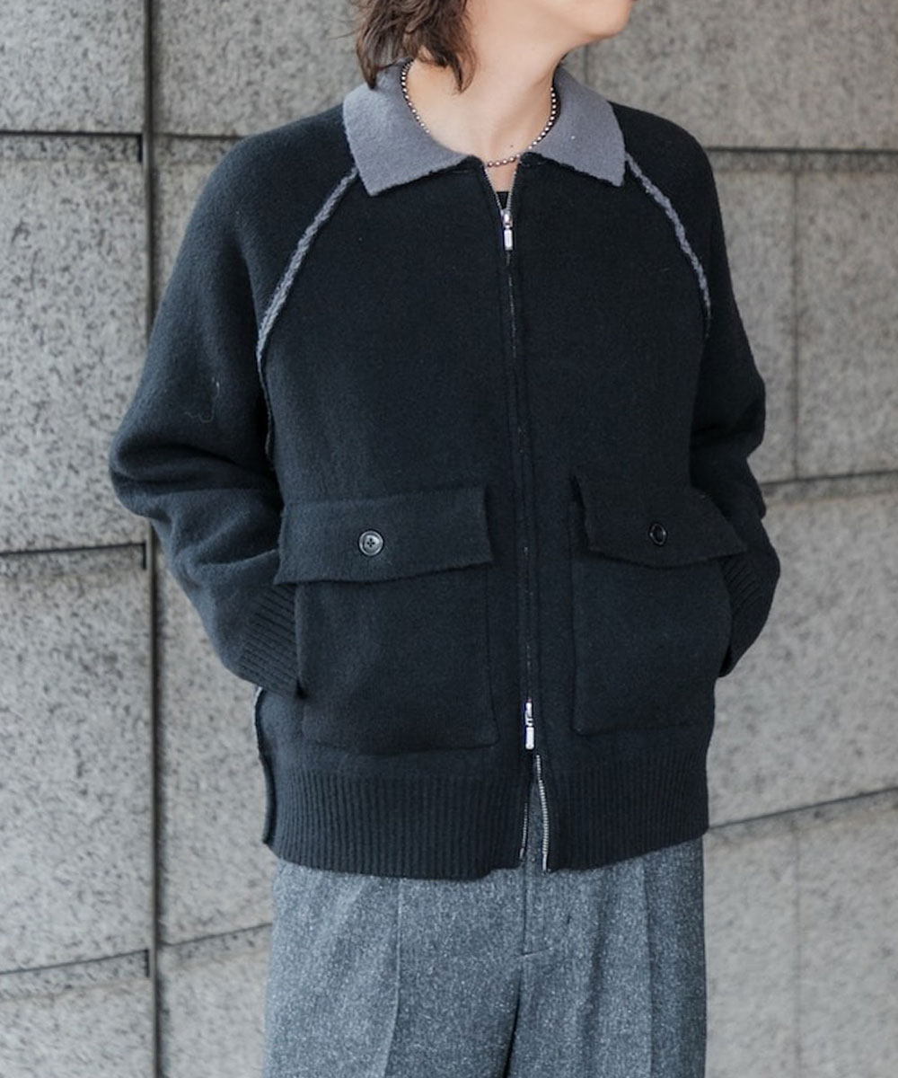 撞色針織拉鍊外套Bi-Color Knit Zip Blouson