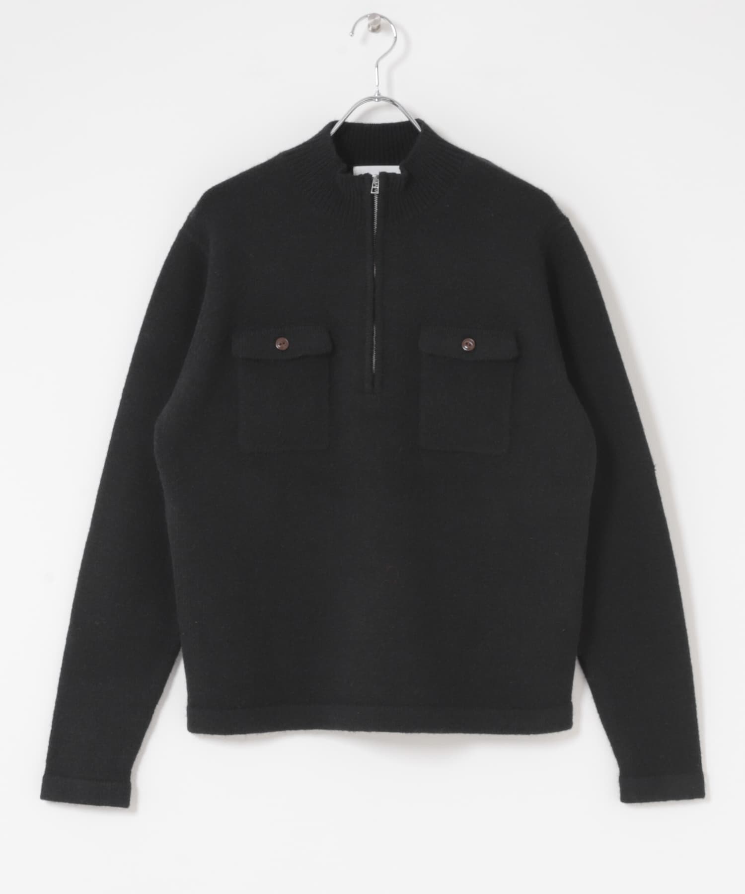 『可機洗』雙口袋半開襟針織上衣Double-Pocket Half-Zip Knit