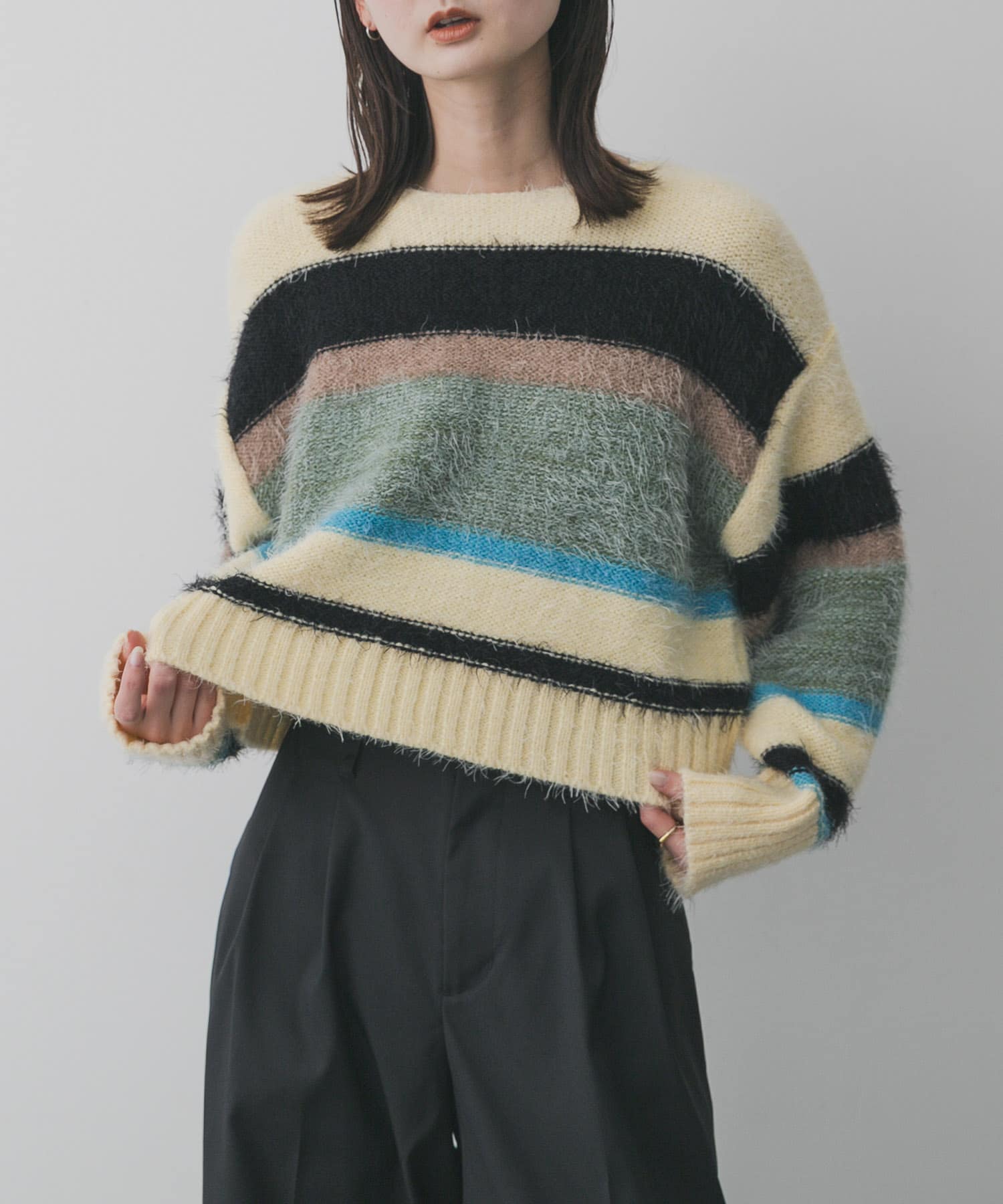 『可機洗』刷毛撞色條紋針織上衣Shaggy Color-Block Border Knit