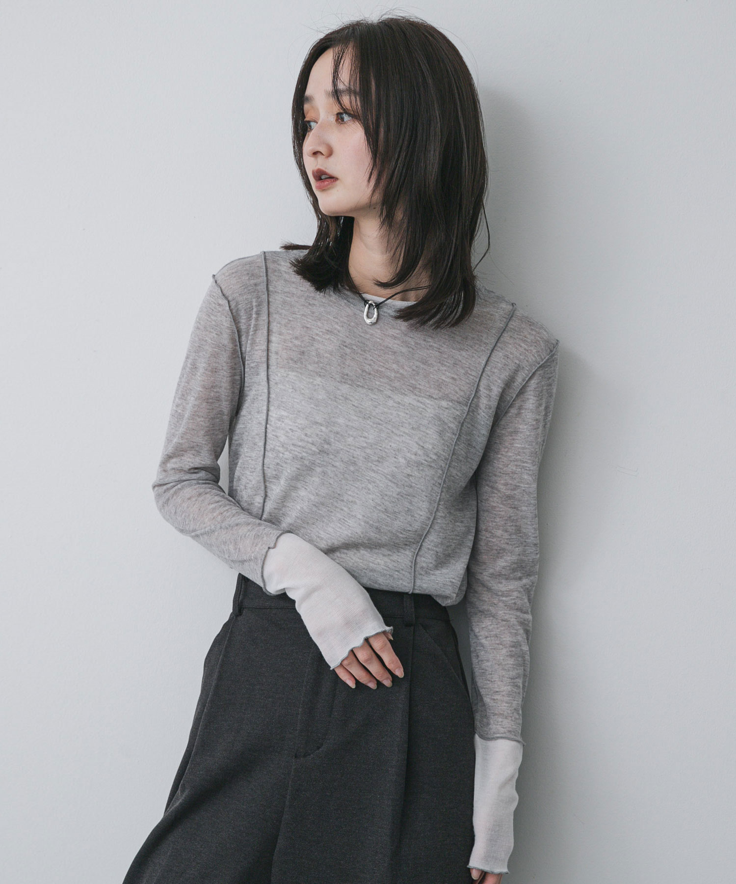 【層次感設計.俐落配色上衣】● 輕盈柔軟、帶有微透感的針織布料● 配色細節打造自然層次感● 彷彿疊穿般的設計,簡單卻時尚以柔軟、帶有微透感的布料製成,呈現自然垂墜感。袖口、領口與下擺的配色設計,營造出宛如重疊穿搭般的層次效果。簡約卻富有設計感,單穿就能展現俐落時尚氛圍。不論搭配丹寧或西裝褲,都能輕鬆融入日常穿搭。