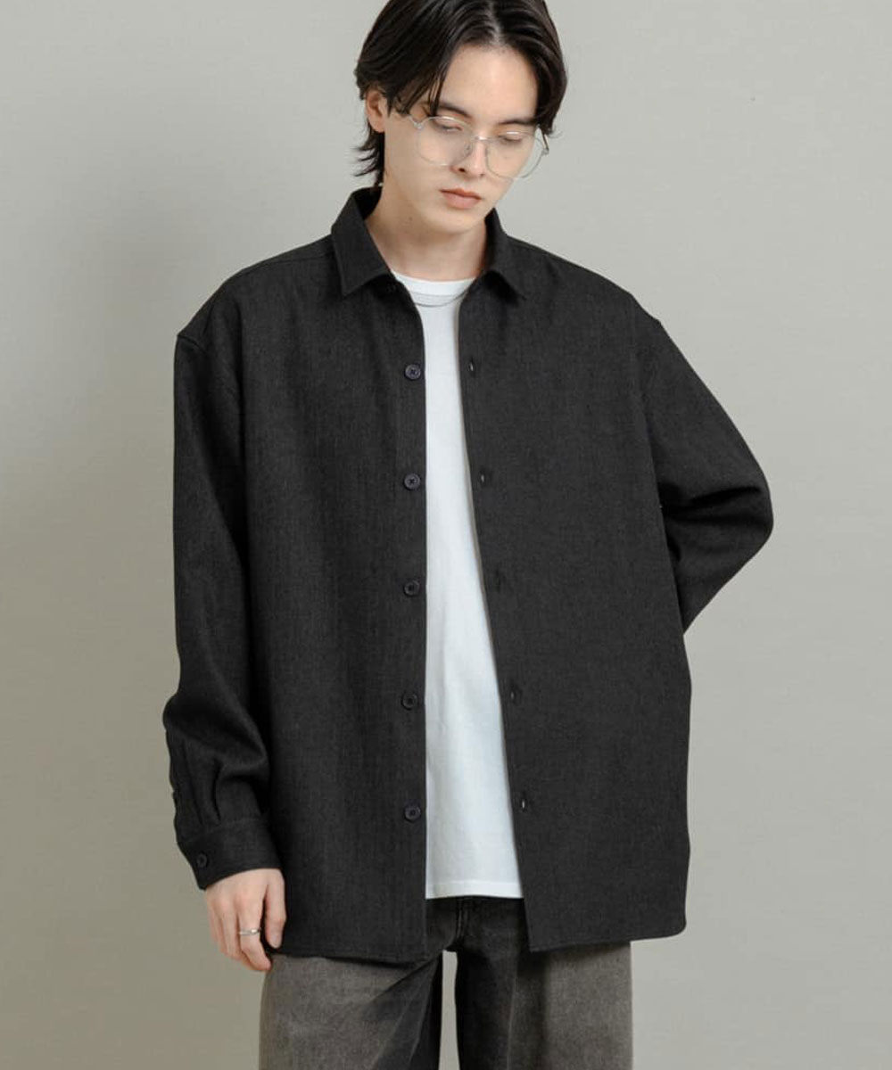 【像外套般輕鬆披上・魅力源自人字紋織法的時髦襯衫】・以休閒感的人字紋織法呈現,但選用質感較佳的布料,打造俐落又不失隨性的風格。・版型略為寬鬆並帶有自然垂墜感,穿上就能展現輕鬆有型的氛圍。・放大的釦子成為造型亮點,也能當作輕外套般隨手披上,展現多樣穿法。material選用柔軟、具自然垂墜感的人字紋布料,兼具視覺層次與舒適穿感。styling推薦搭配錐形西裝褲,將襯衫作為薄外套般穿著,簡潔俐落又帶點成熟感。若搭配寬版羊毛長褲,能突顯材質的對比,展現都會時髦風格。內搭高領或半高領針織,更能增加層次感,是秋冬穿搭的理想組合。