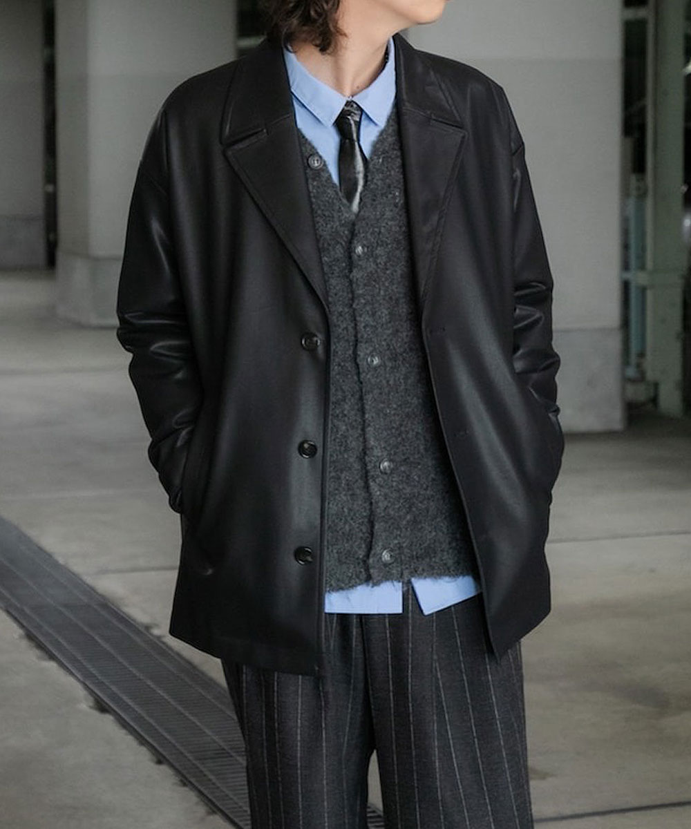 【為穿搭增添酷感層次。中長版剪裁的合成皮外套】・選用合成皮革打造中長版剪裁,結合經典元素與當季流行,展現洗鍊又具個性的風格。・寬鬆輪廓設計不僅適合秋季輕鬆披上,也能作為冬季的主力外套。・只要簡單一披,便能為日常穿搭注入酷感氣息,瞬間升級整體造型。material採用柔軟好穿的合成皮革布料,外觀具有如真皮般的光澤與高級感,卻輕盈好活動,穿起來毫無負擔。styling搭配窄管或喇叭剪裁的長褲,即可展現俐落的摩登風格;搭配寬版丹寧褲或工裝褲,則能透過皮革質感營造大人感街頭造型。內搭高領針織衫或連帽上衣,打造層次感穿搭也相當推薦。