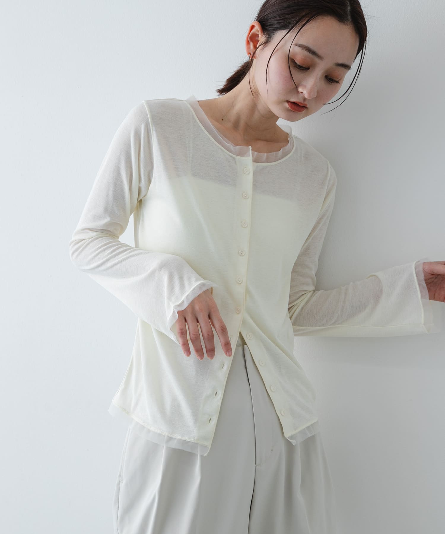 透膚網紗層次開襟衫Tulle Sheer Layered Cut Cardigan