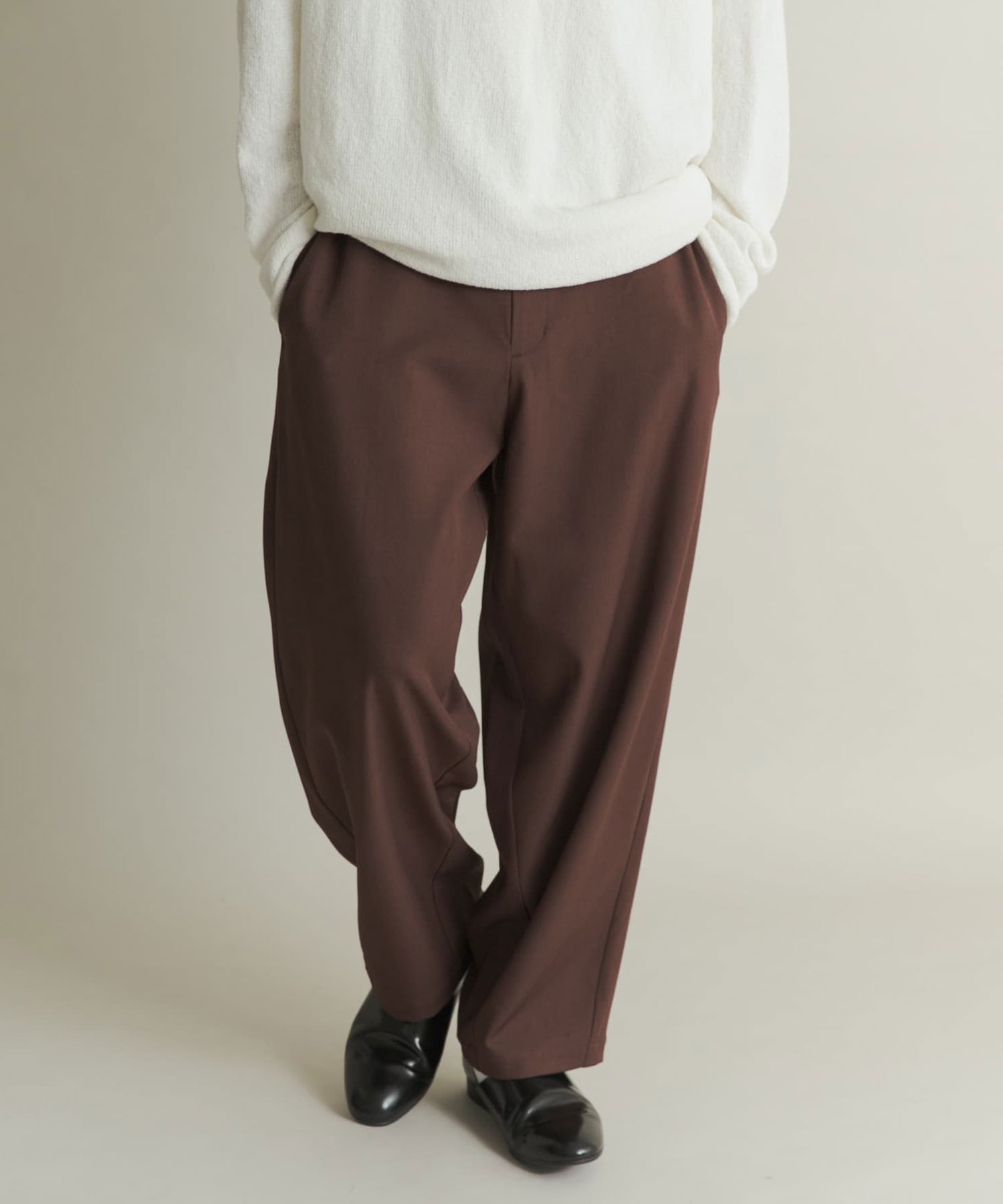 【為穿搭增添玩心與優雅,以流行剪裁展現魅力的繭型長褲】・圓潤的繭型剪裁為日常穿搭注入新鮮感與流行氣息・輕盈的西裝面料帶來適度份量感,營造俐落有型的穿搭印象・背後鬆緊腰設計,兼具俐落外觀與輕鬆舒適的穿著體驗material採用秋冬感十足、帶有微光澤感的合成纖維材質,散發優雅又都會的氛圍。布料略帶彈性,活動自在舒適。styling搭配簡約的針織衫或襯衫,就能突顯褲款輪廓,輕鬆完成時髦穿搭。外搭西裝外套或大衣則展現俐落洗練感。下身可選擇球鞋增添休閒氛圍,或搭配皮鞋提升整體質感,根據不同場合輕鬆變化風格。