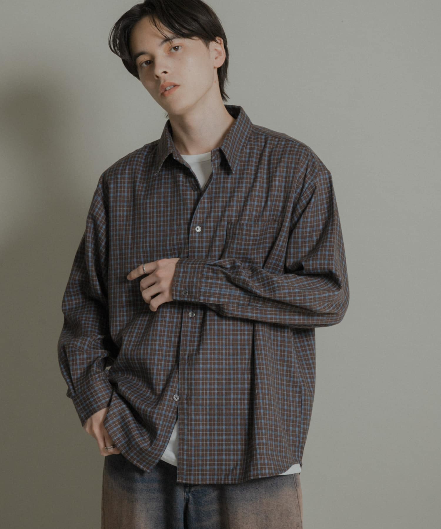 格紋長袖法蘭絨襯衫Nuance Check Long-Sleeve Flannel Shirt