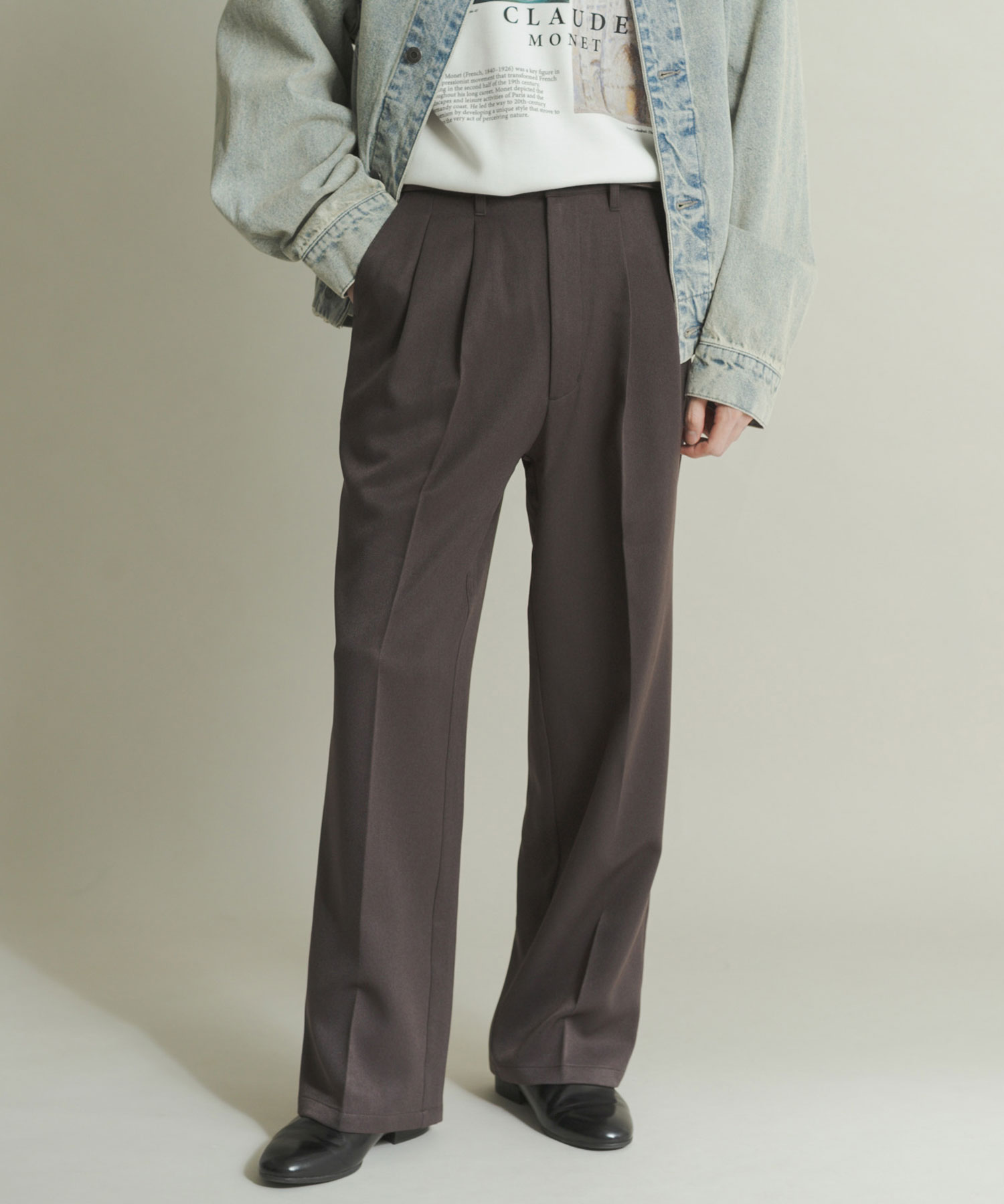仿羊毛雙打褶寬褲Wool-like Double Tuck Wide Pants