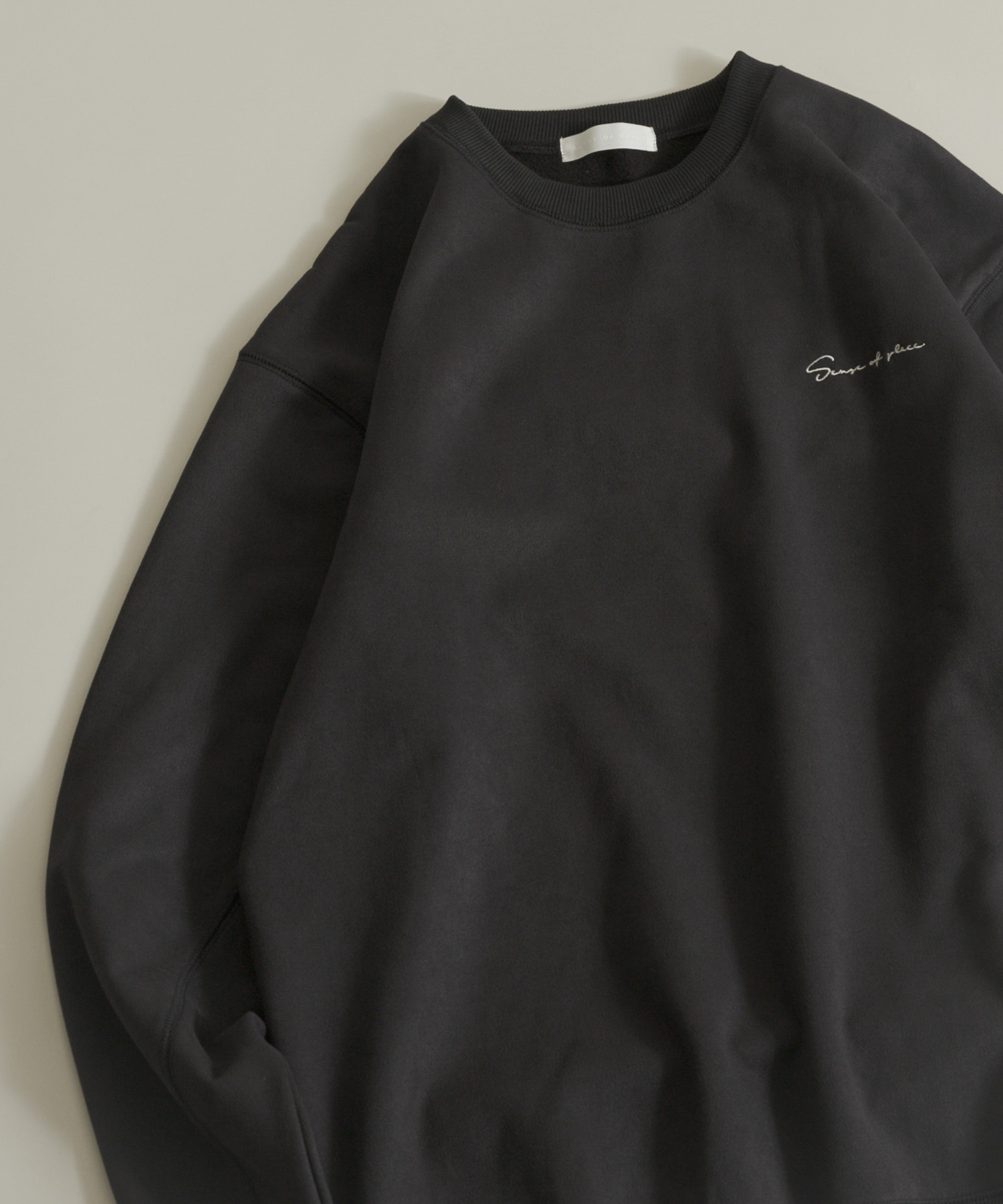 仿麂皮刺繡LOGO圓領大學TEmbroidered Faux Suede Crewneck Sweatshirt