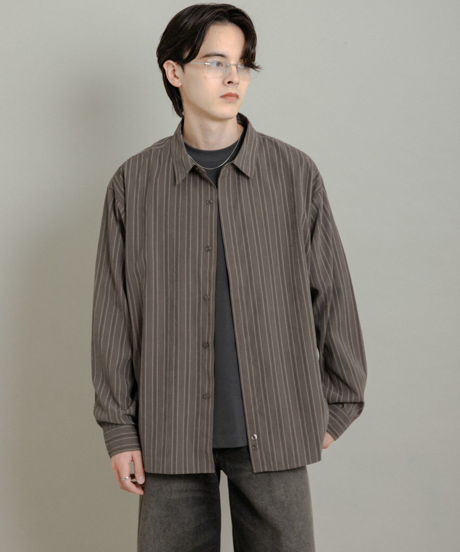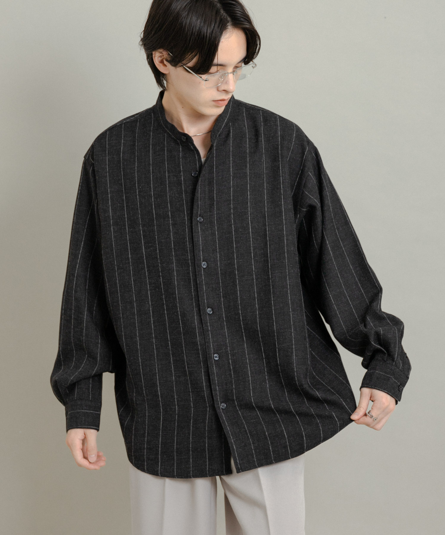 仿羊毛條紋立領襯衫Wool-Touch Stripe Band Collar Shirt