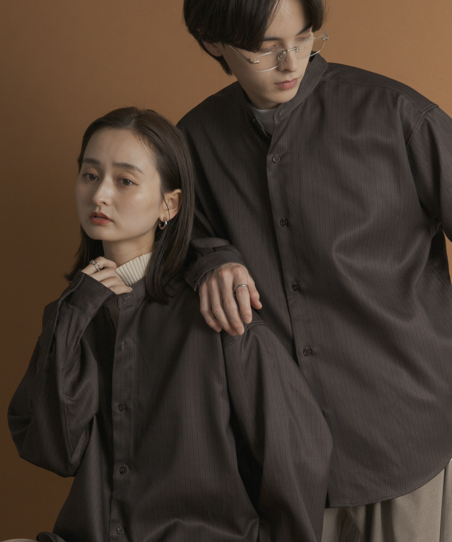 仿羊毛立領落肩襯衫Wool-like Band Collar Loose Shirt官網獨家11價