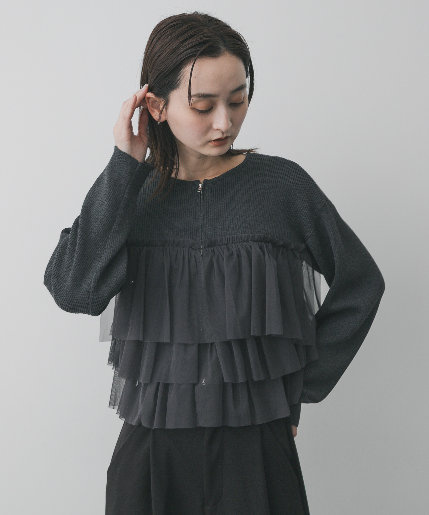 雙拉鍊荷葉針織開襟衫Double Zip Frill Knit Cardigan期間限定價格