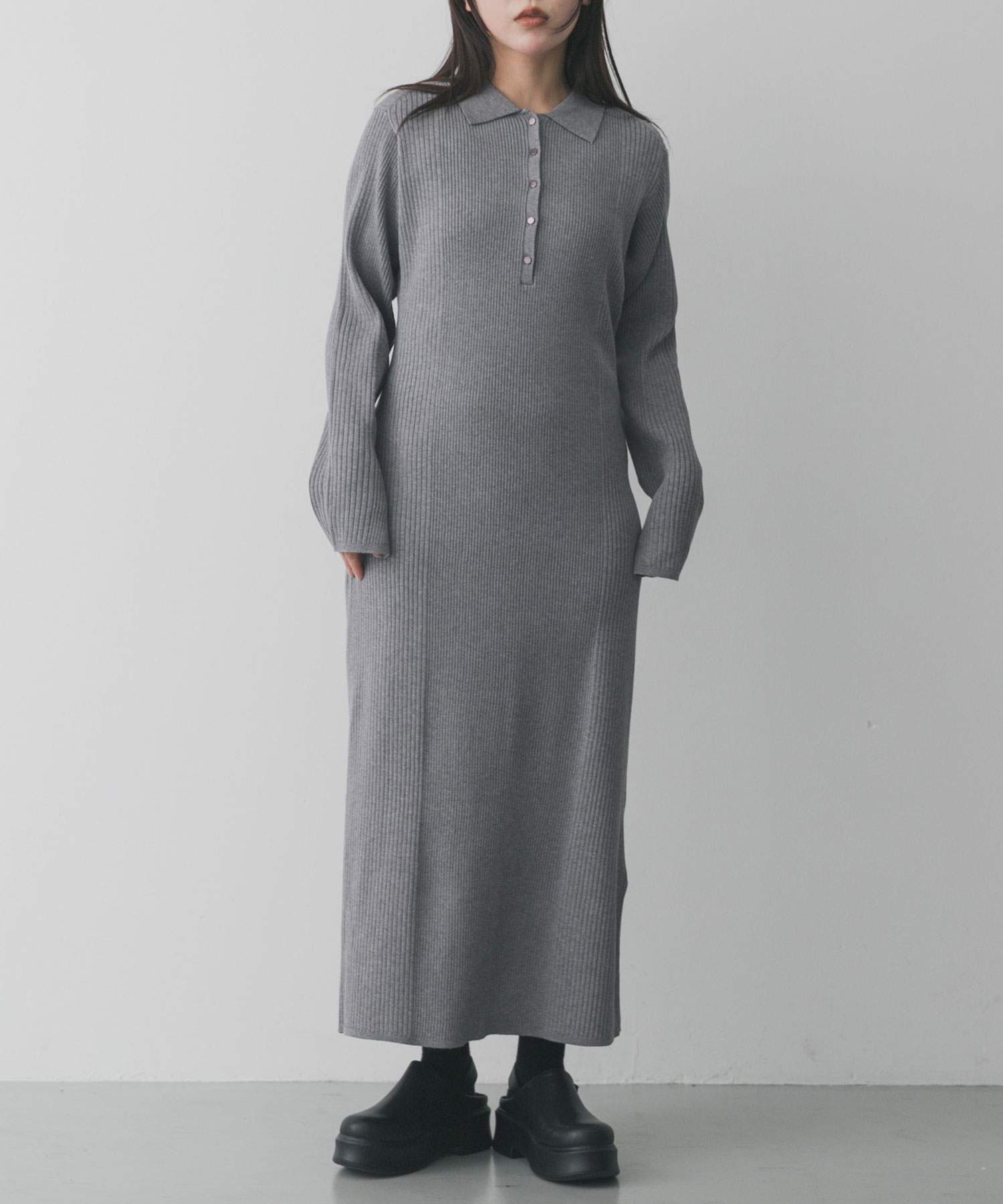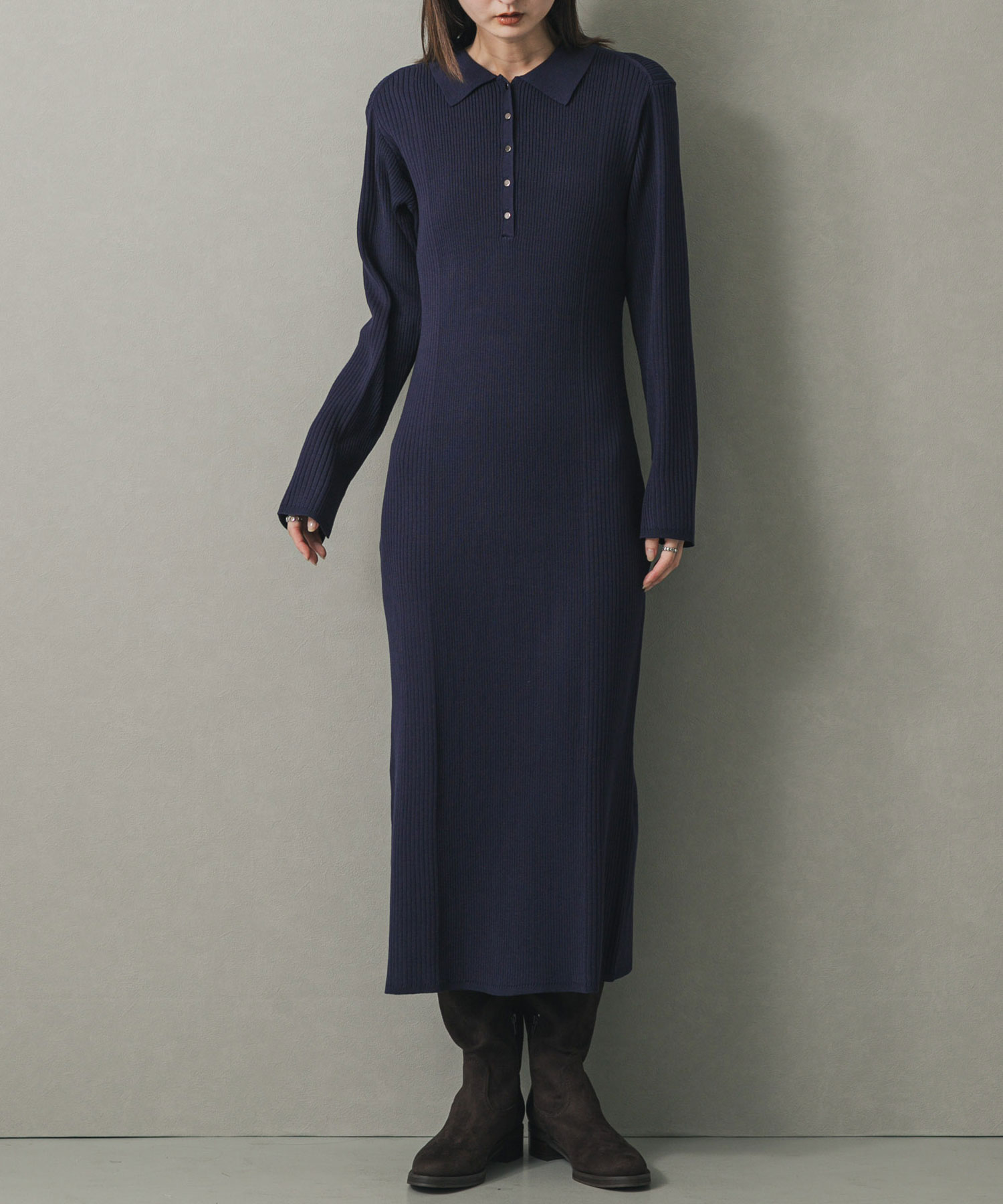 翻領羅紋針織洋裝Collar Rib Knit Dress