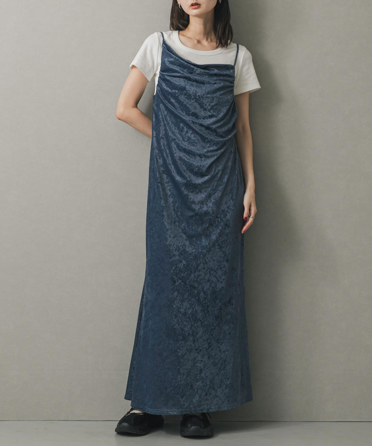 透膚天鵝絨垂墜吊帶洋裝Sheer Velour Drape Camisole Dress