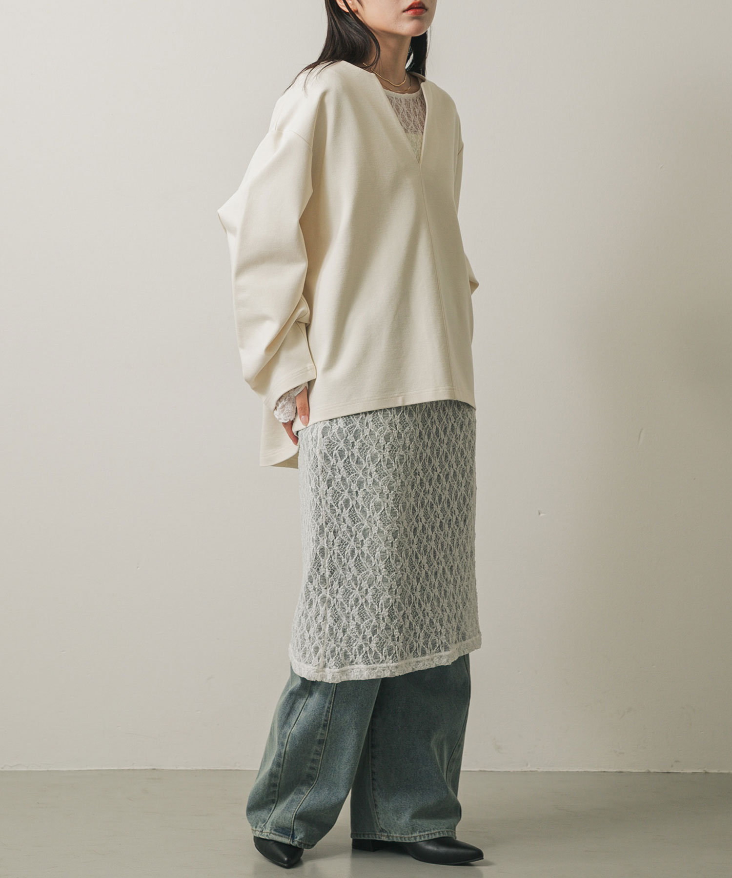 挖背透膚蕾絲洋裝Back Open Layered Lace Dress