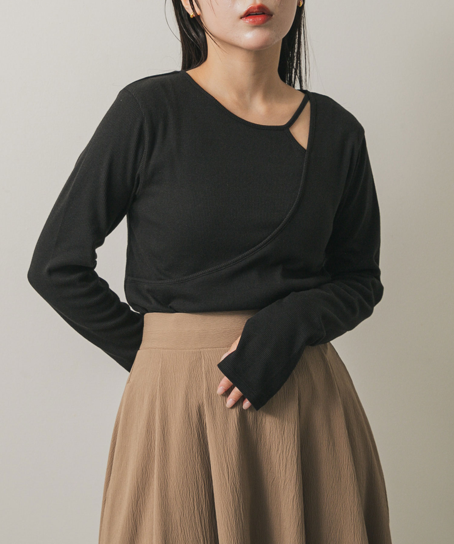 不對稱領羅紋上衣Asymmetrical Rib Compact Top官網獨家11價