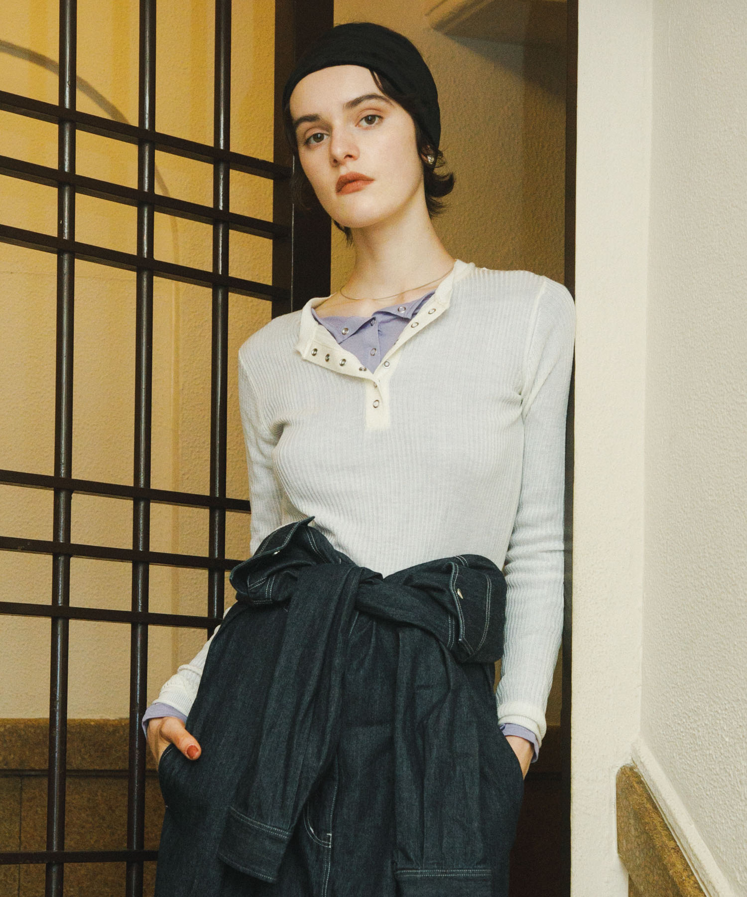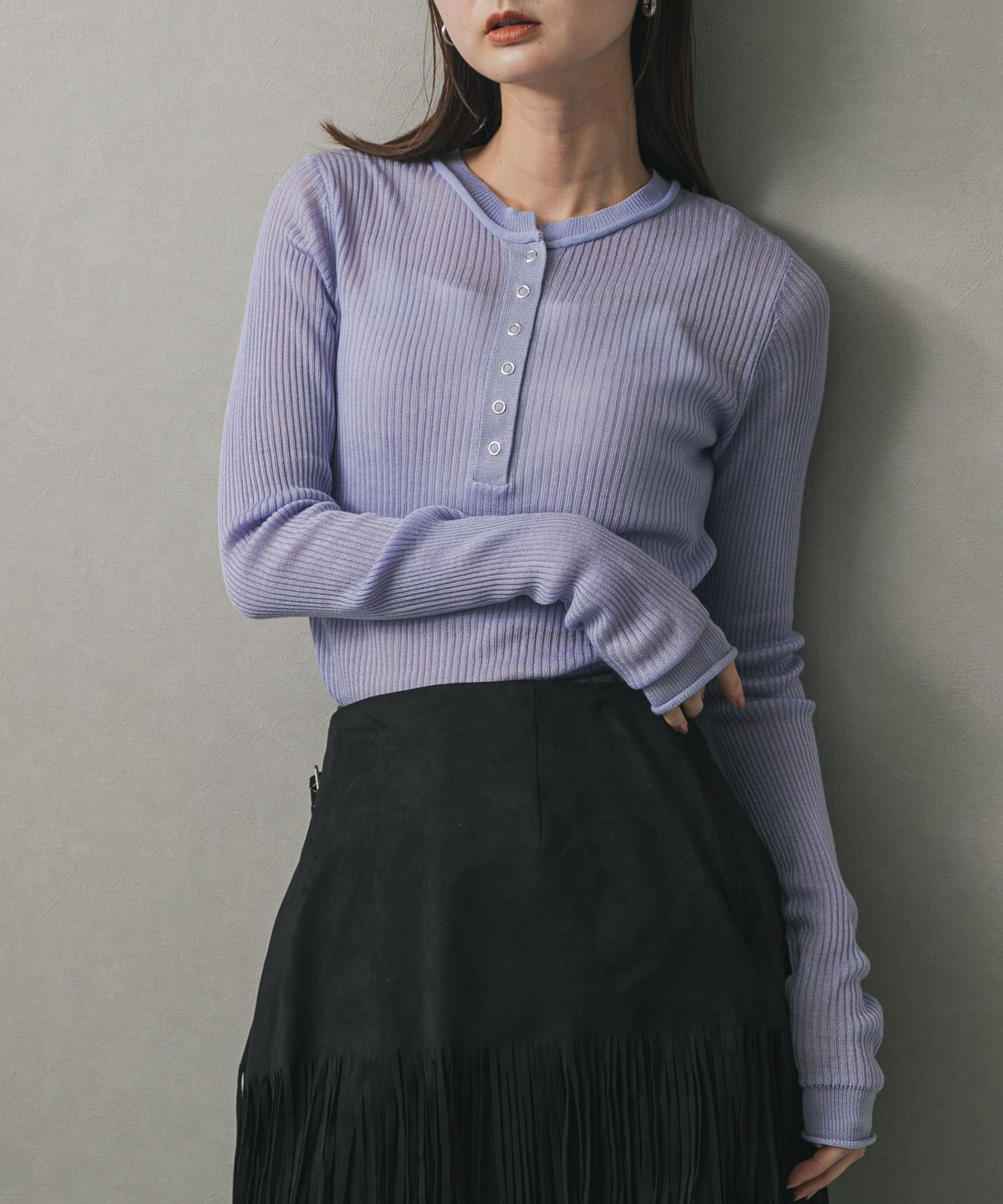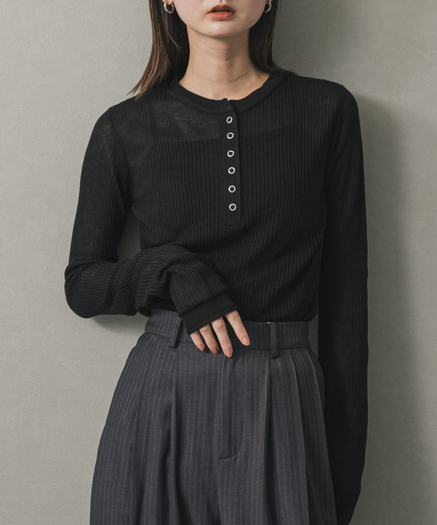 透膚亨利領針織上衣Sheer Henley Neck Sweater官網獨家11價