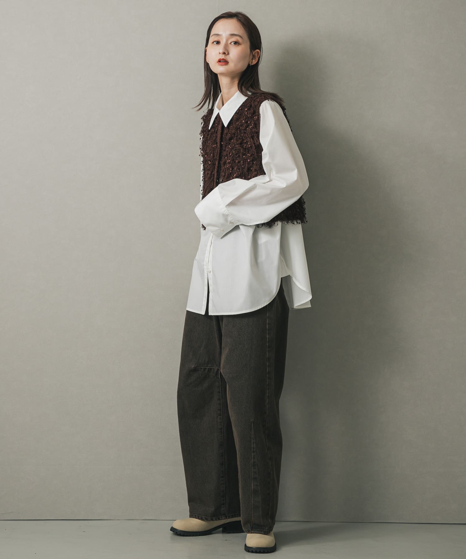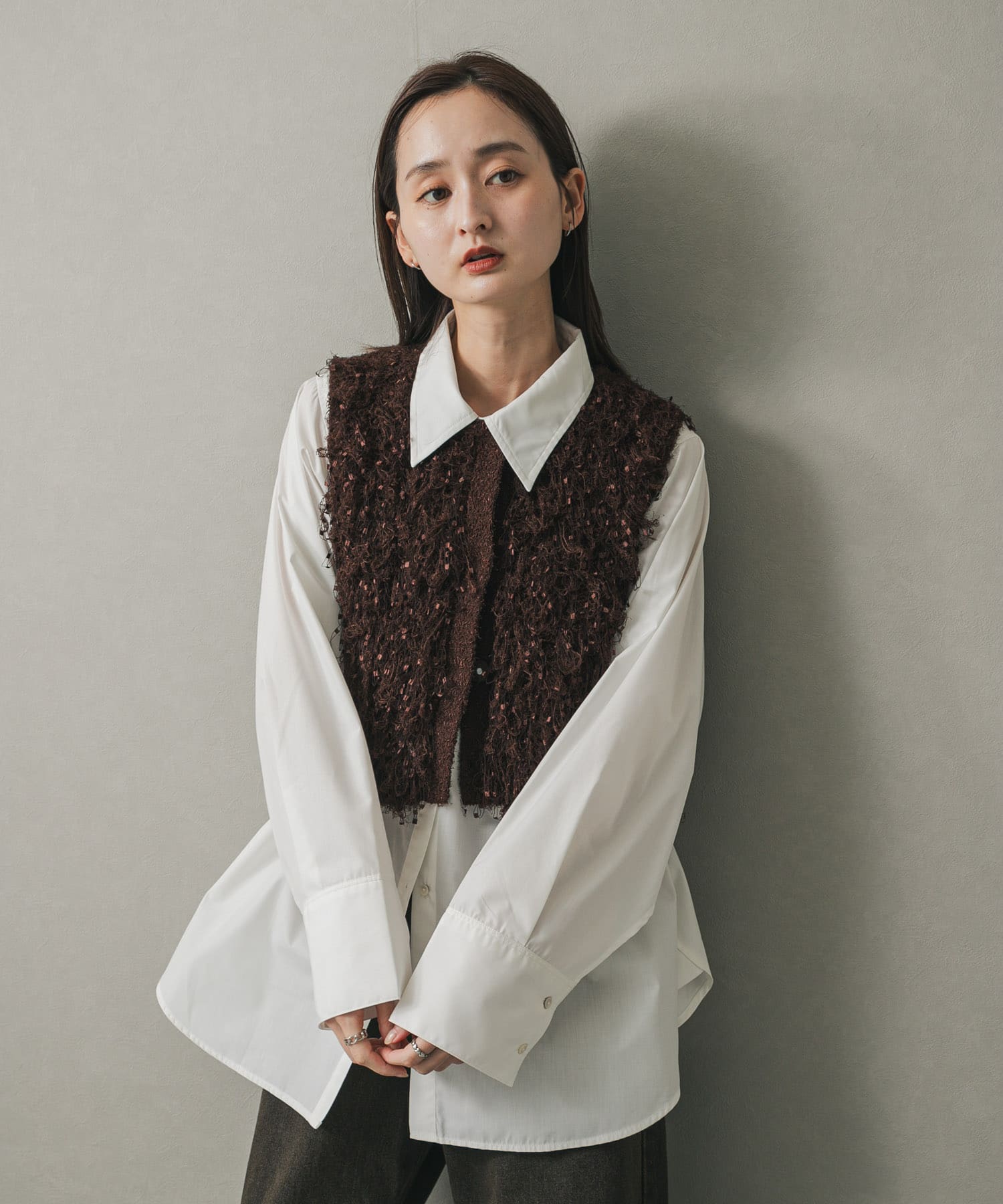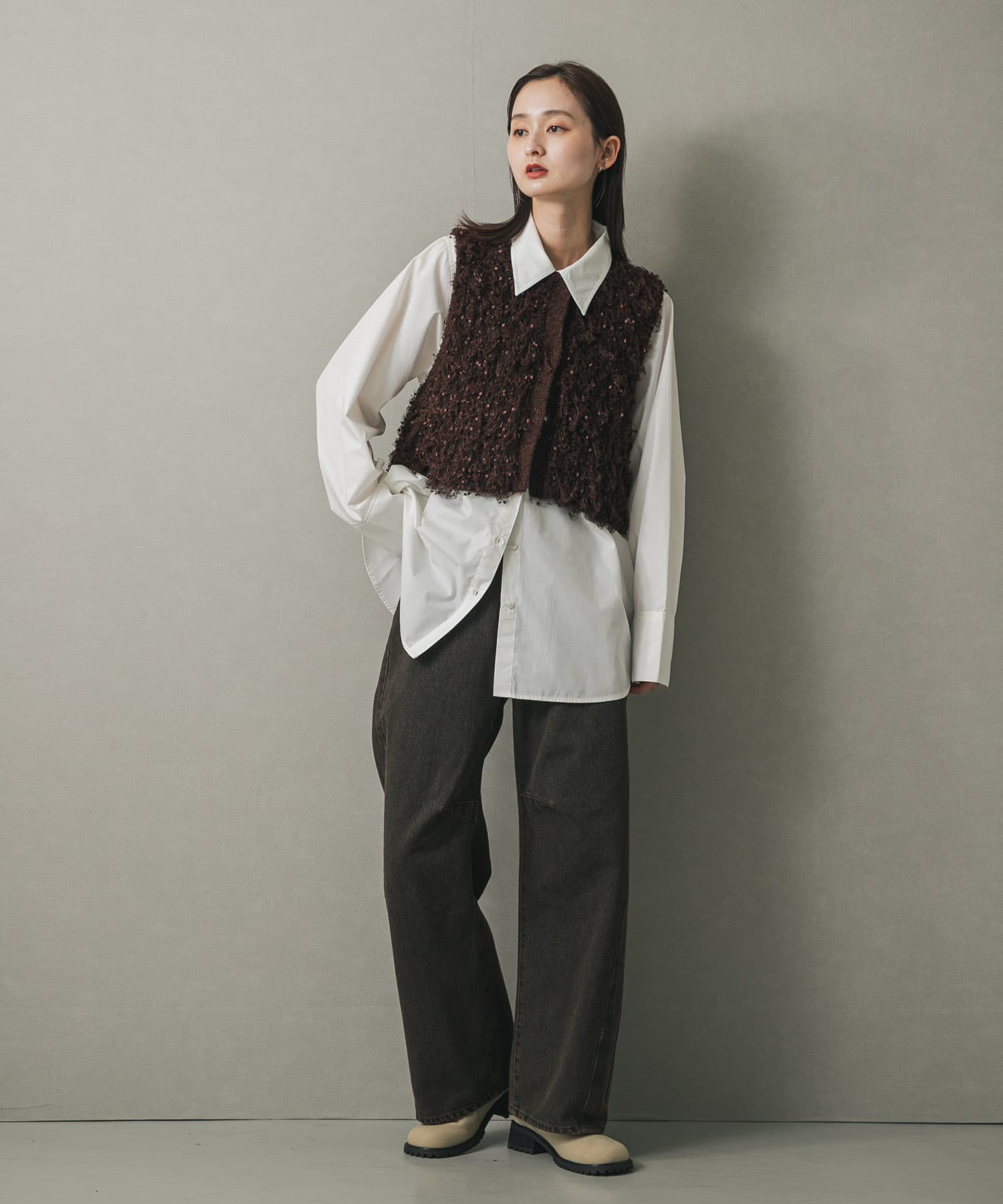 毛圈短版針織背心BROWN