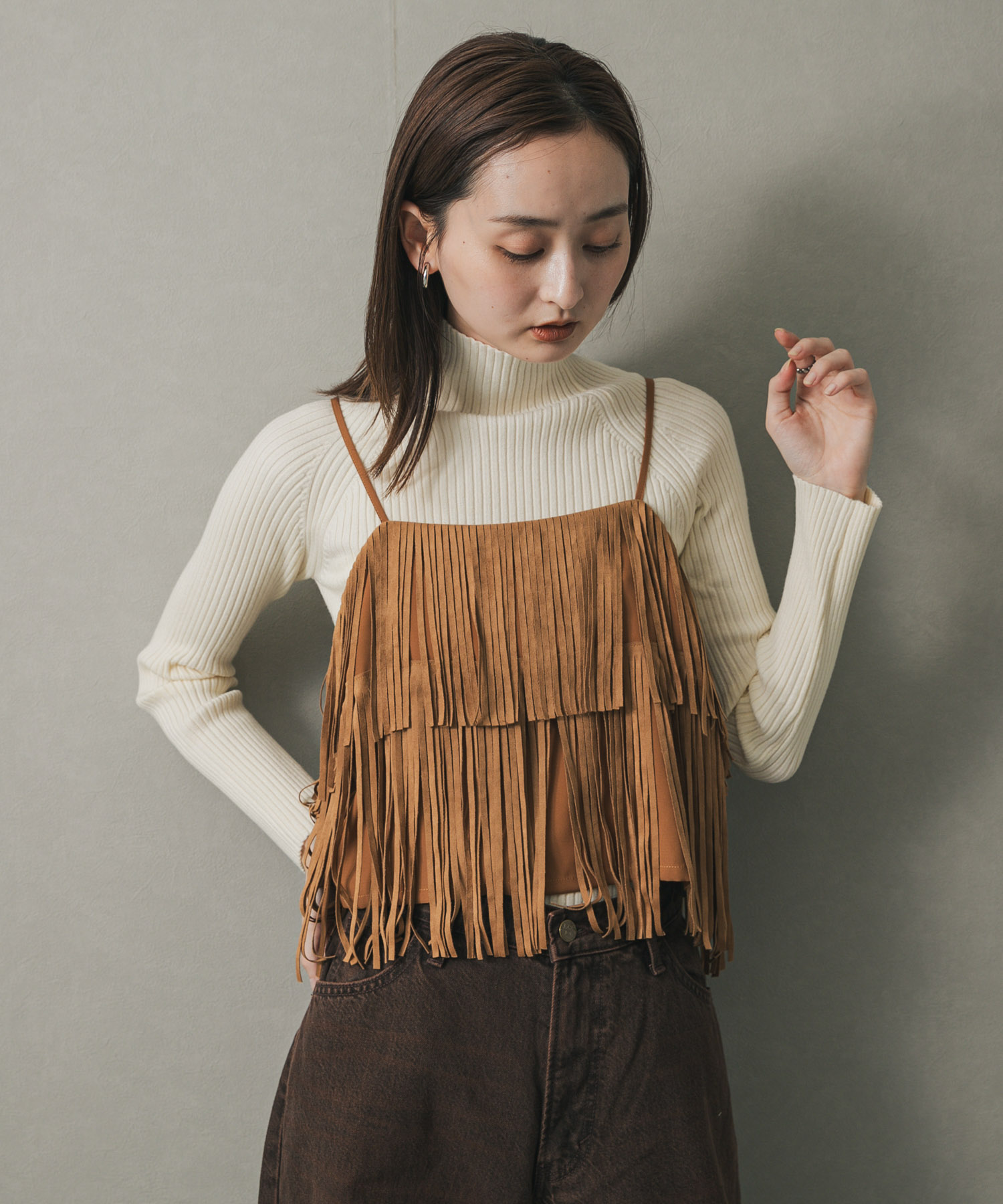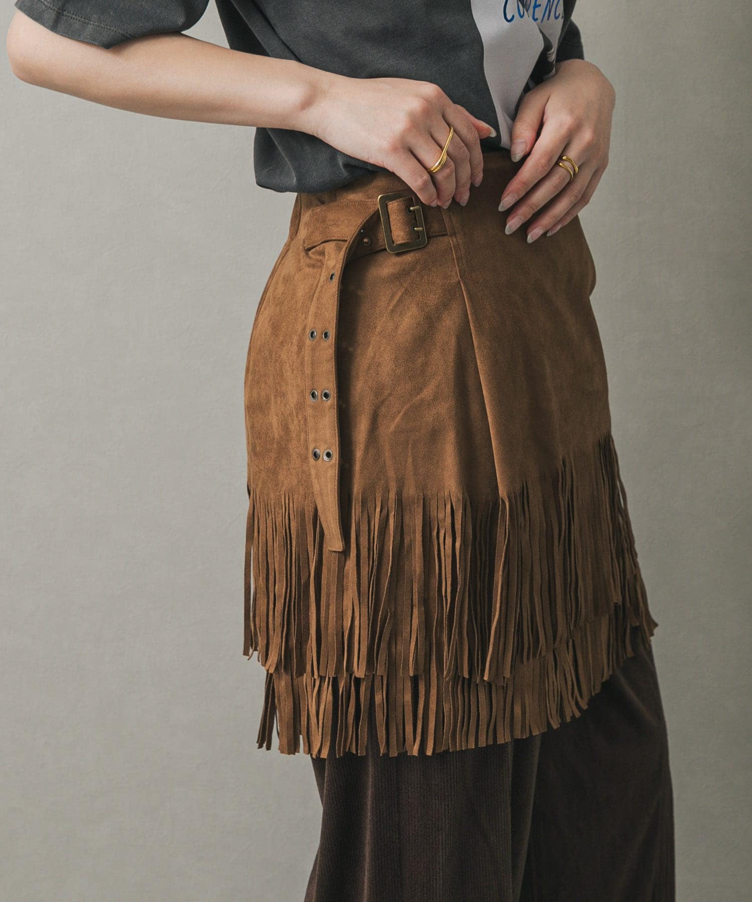 流蘇設計短裙CAMEL