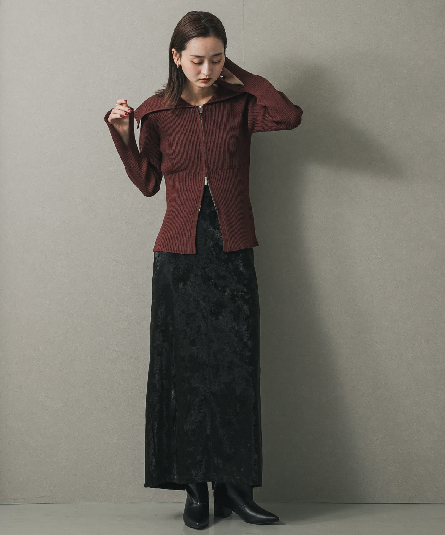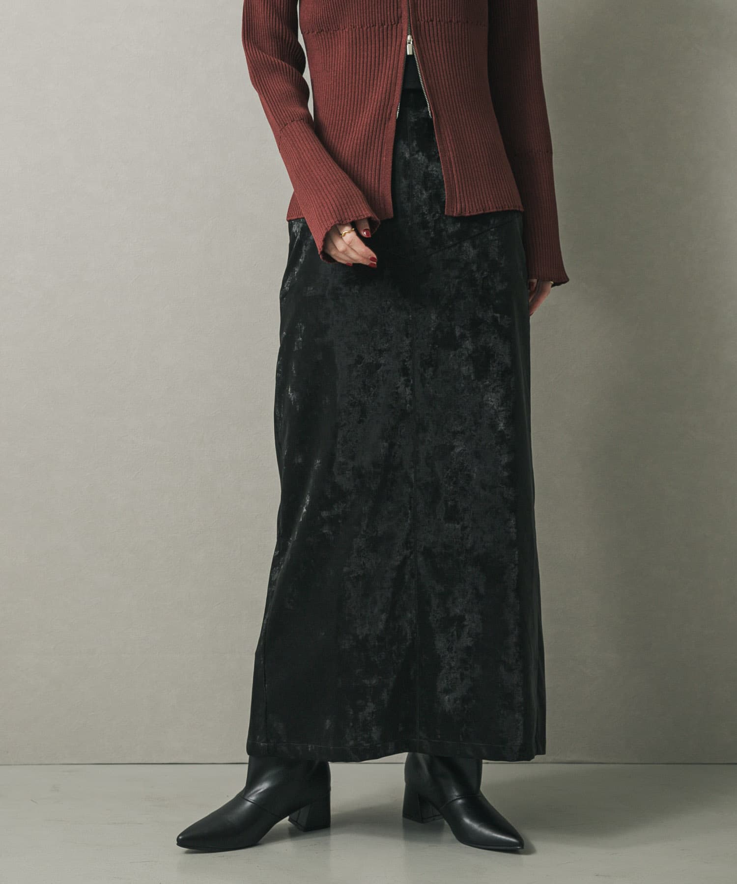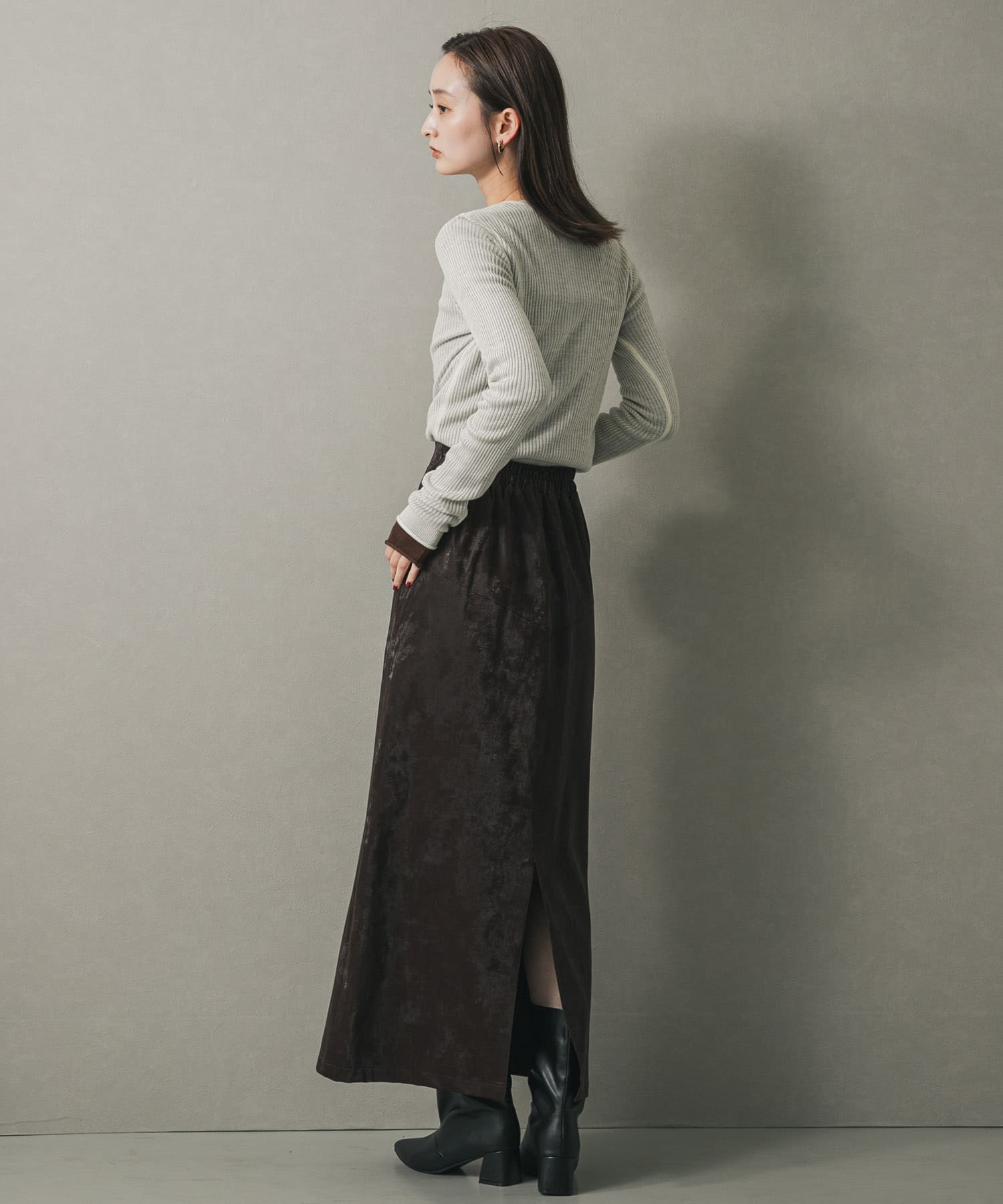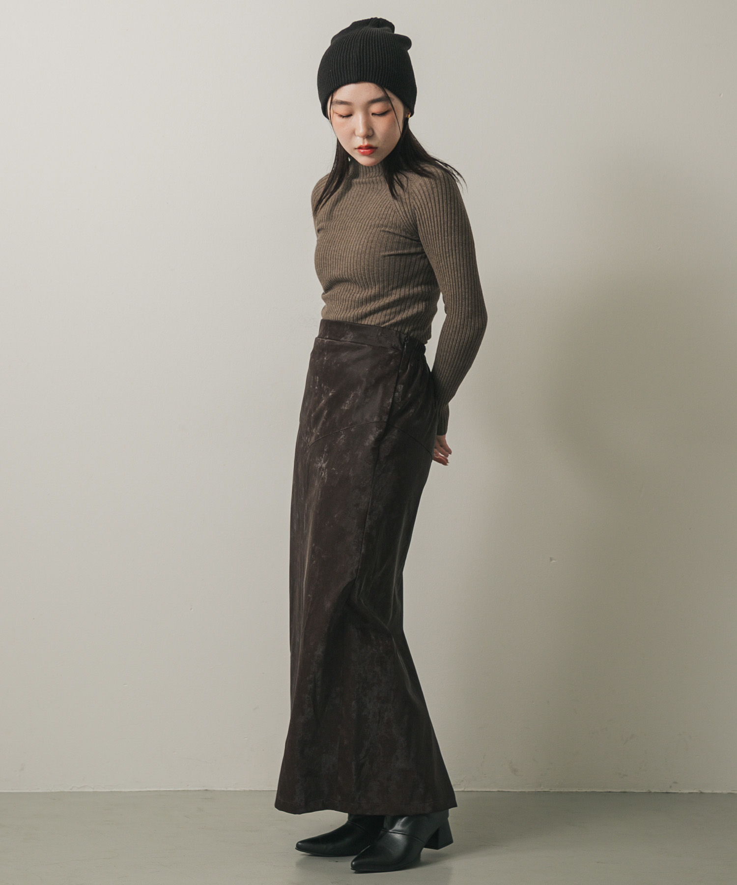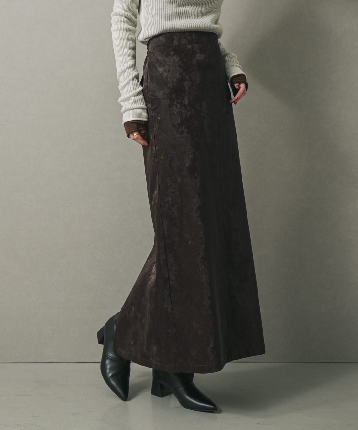仿皮革直筒窄裙BROWN