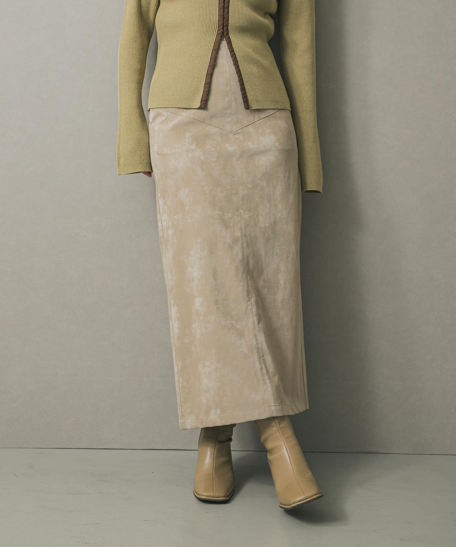 仿皮革直筒窄裙BEIGE