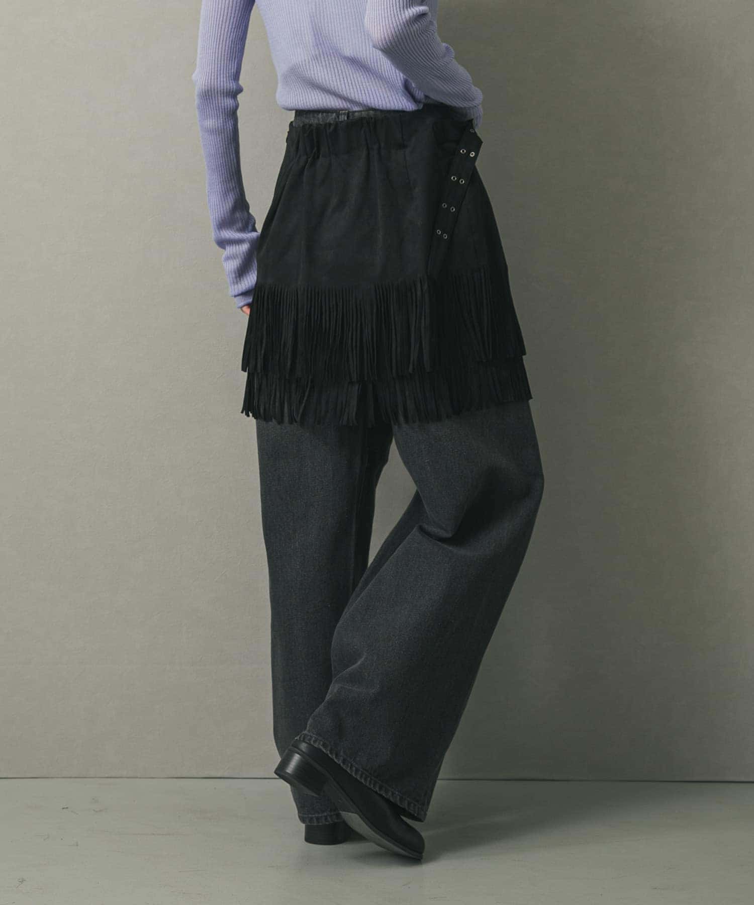 流蘇設計短裙BLACK