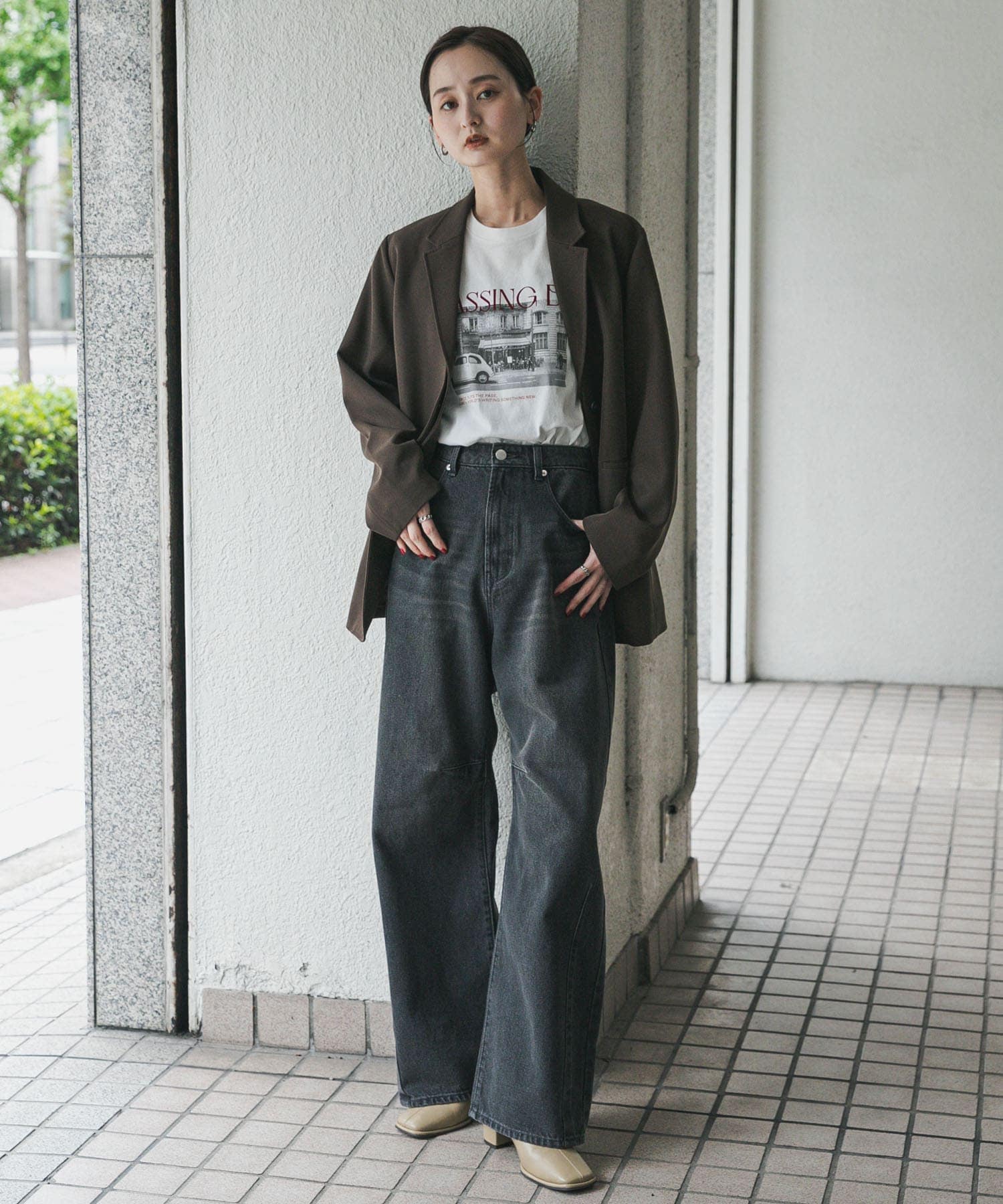 繭形丹寧褲GRAY