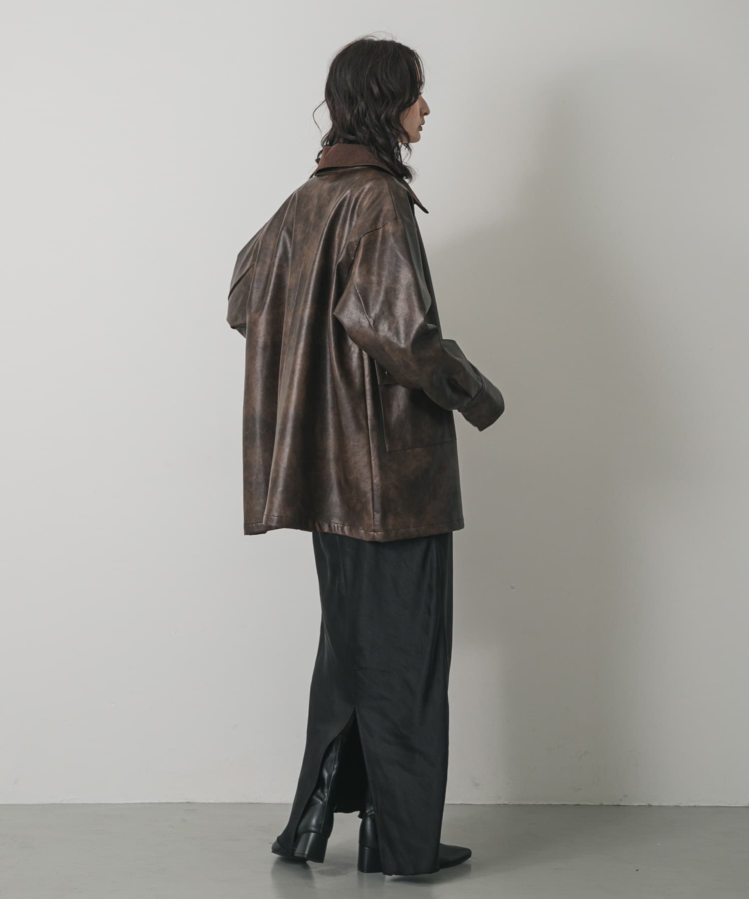 仿皮革狩獵夾克BROWN