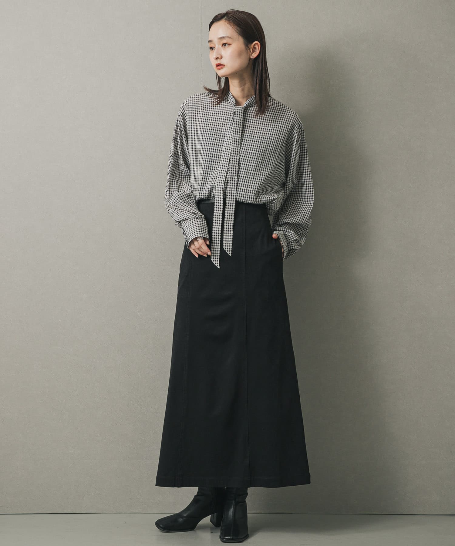 綁帶領襯衫BEIGE