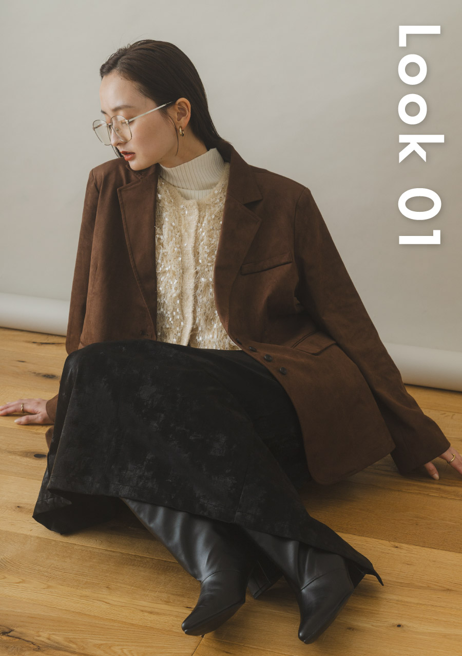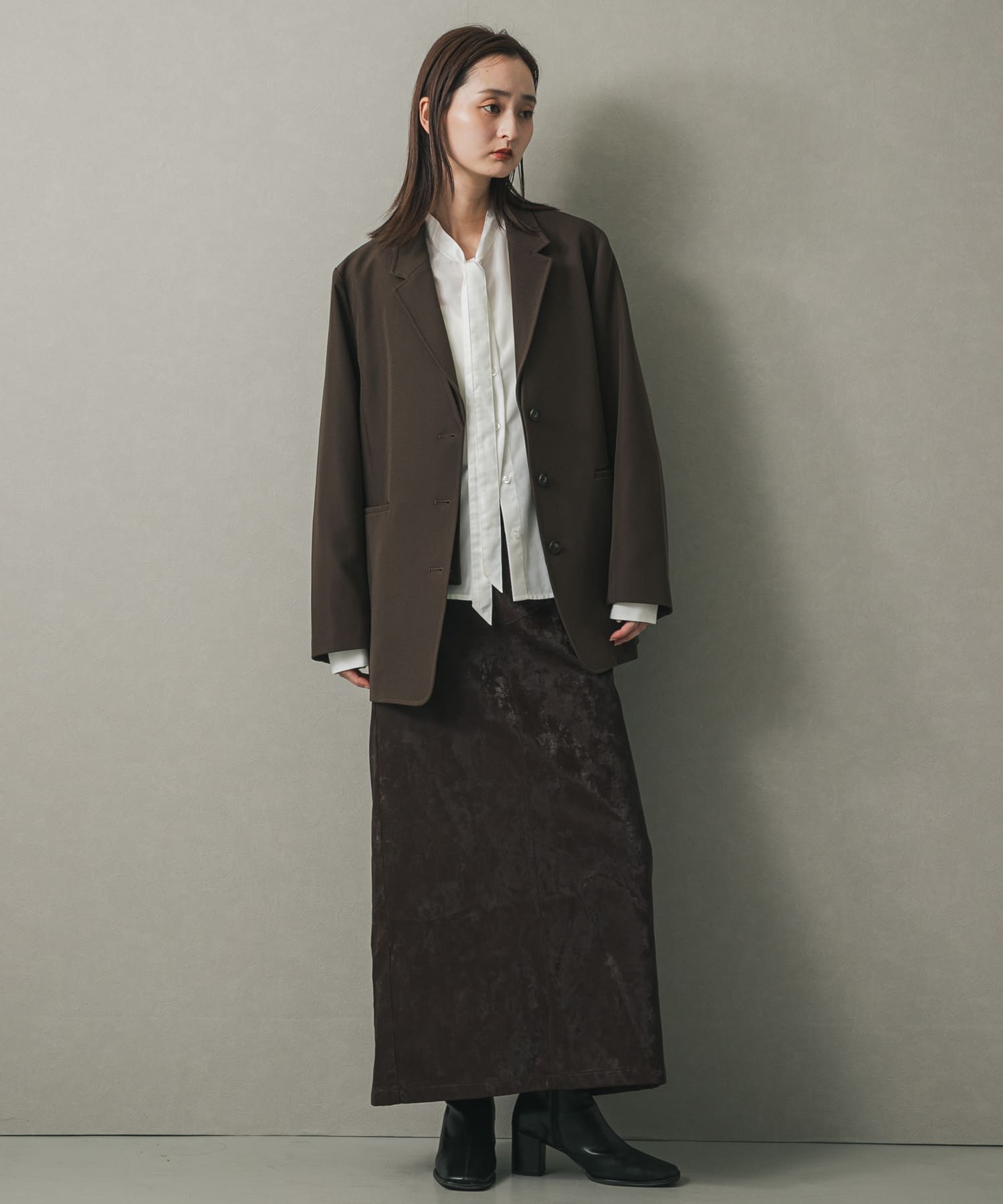 仿麂皮西裝外套BROWN