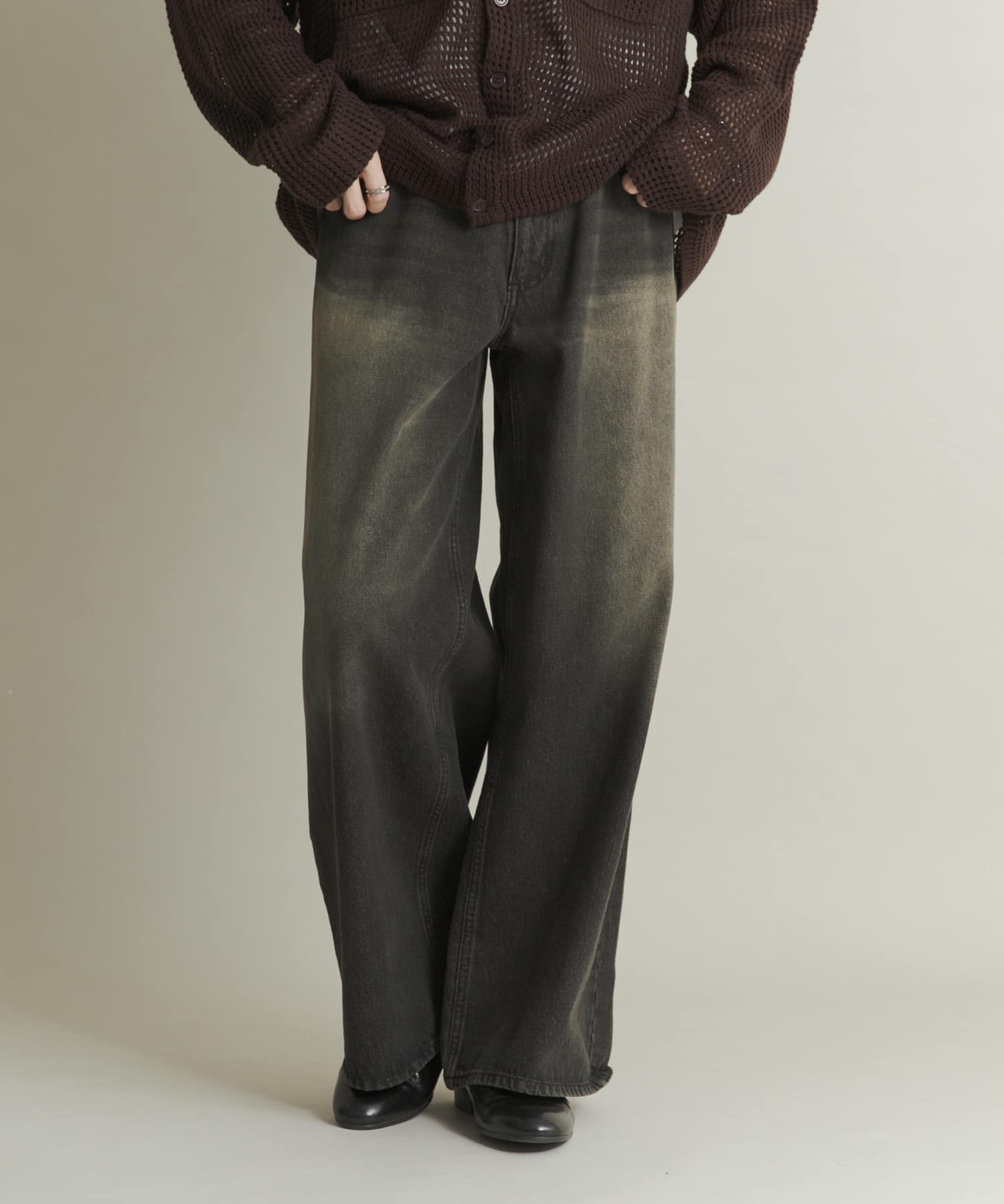 仿舊刷色寬版丹寧褲BLACK