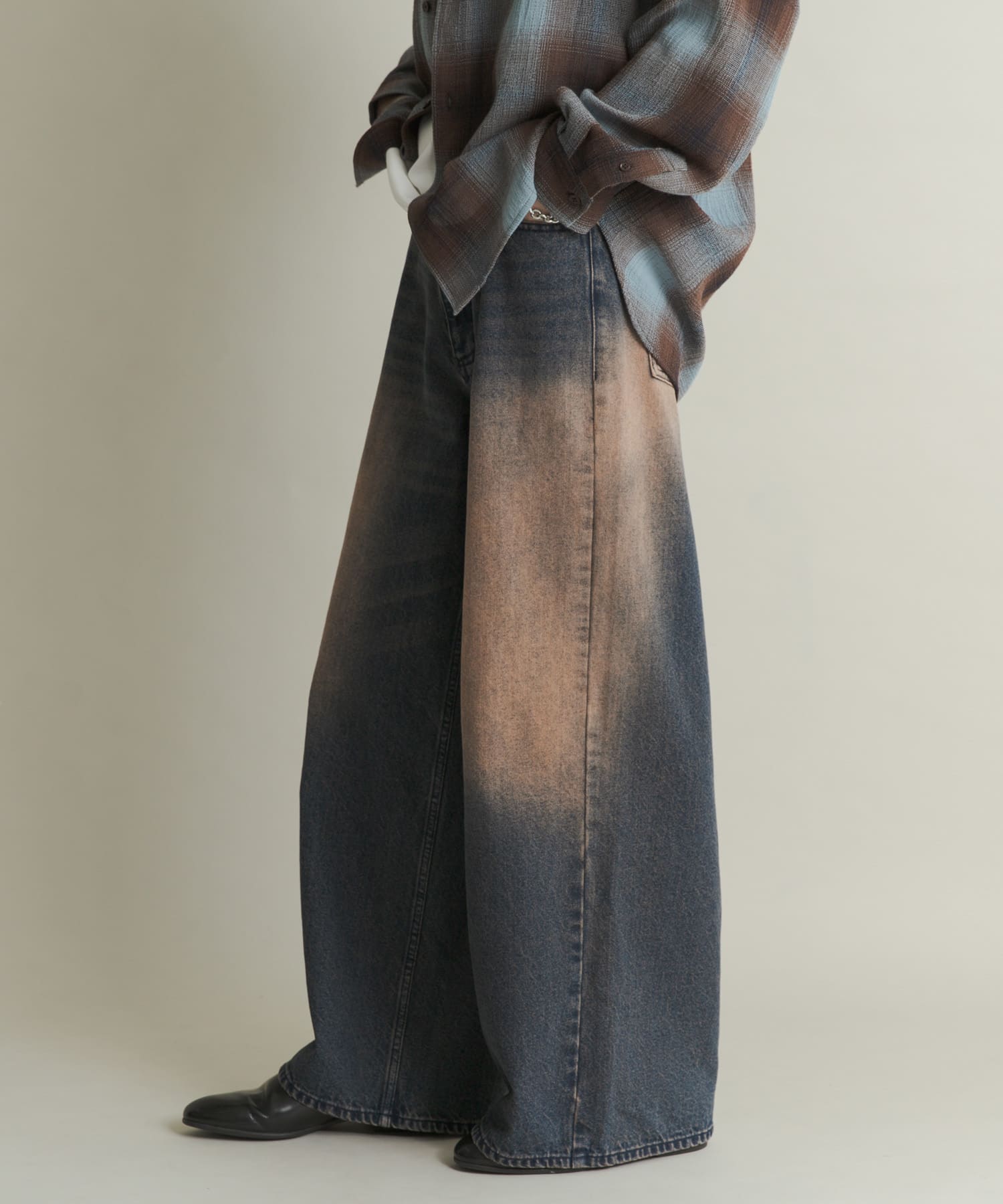 仿舊刷色寬版丹寧褲INDIGO BLUE