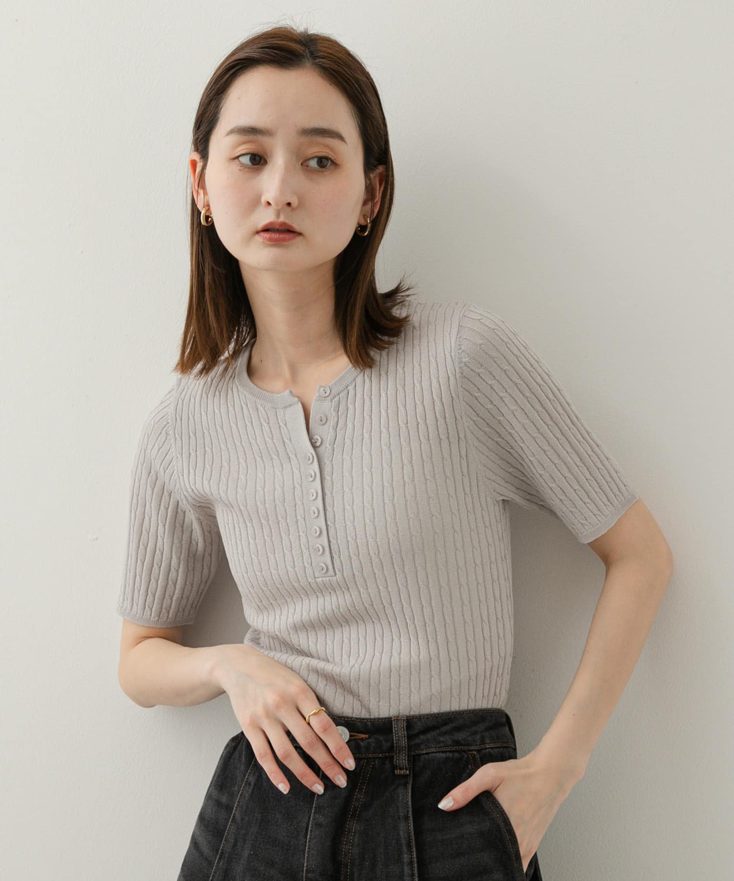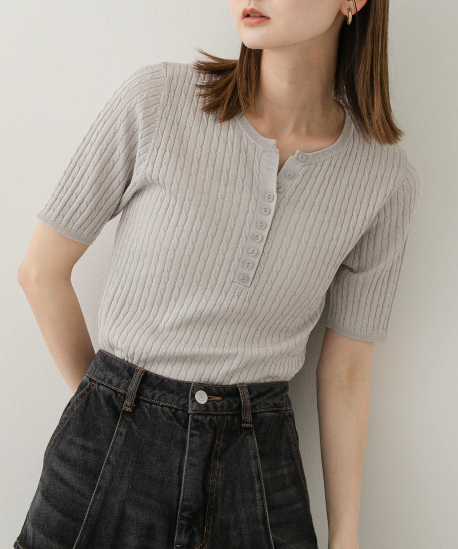 亨利領迷你麻花針織上衣GRAY