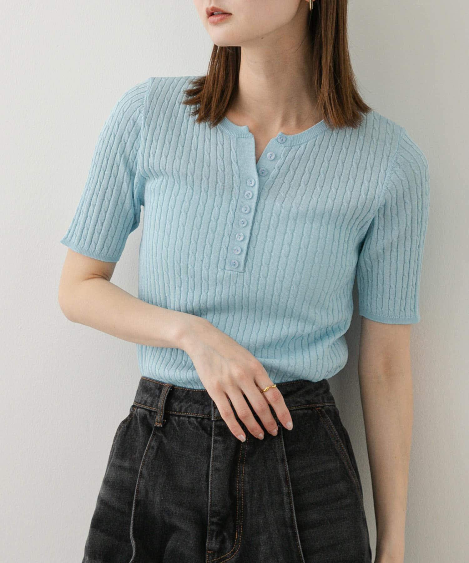 亨利領迷你麻花針織上衣LIGHT BLUE