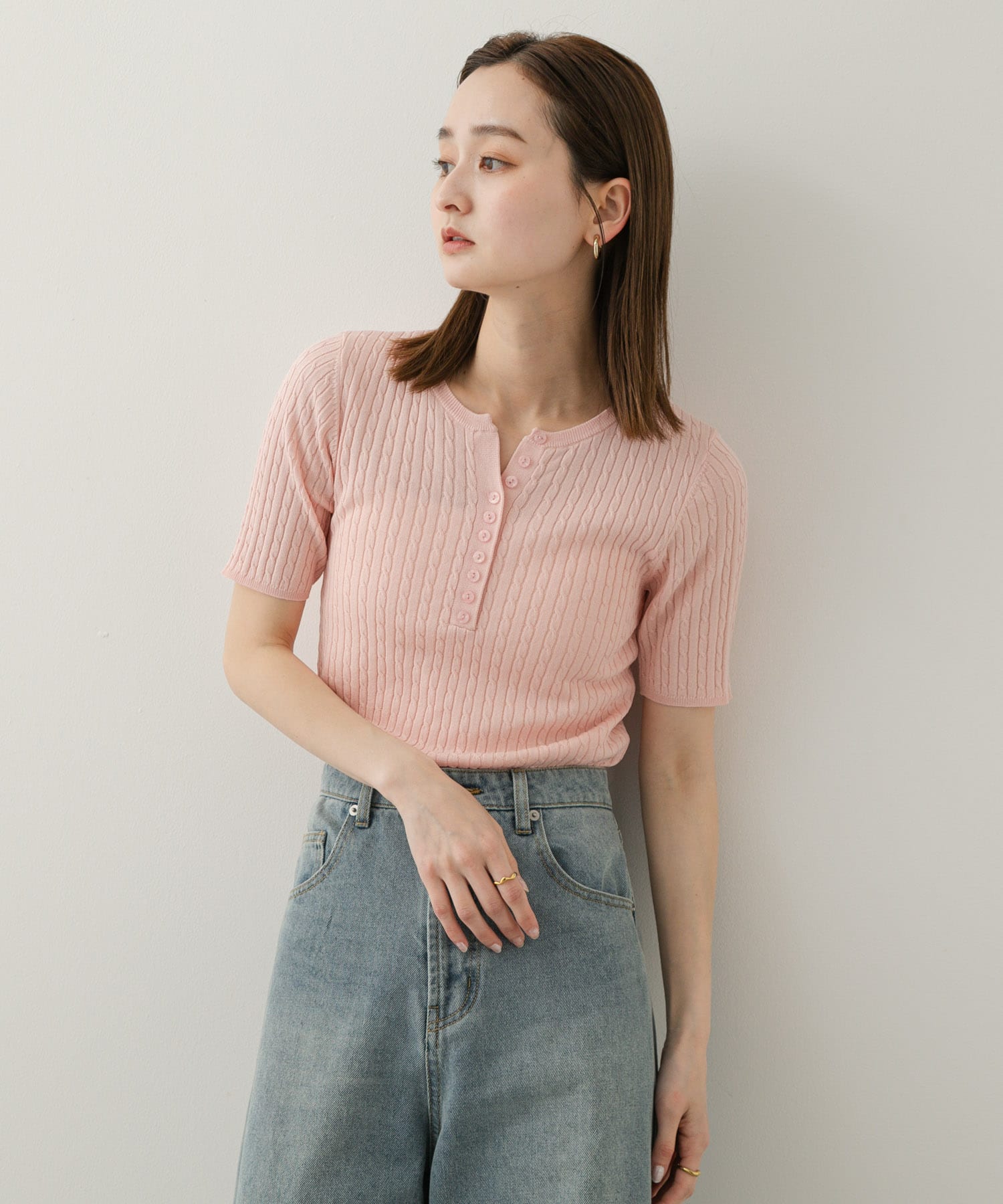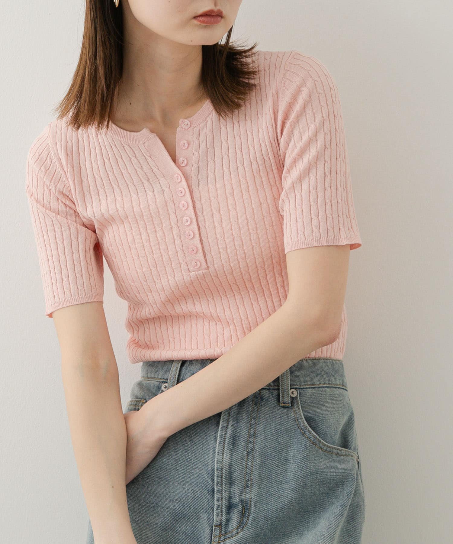 亨利領迷你麻花針織上衣PINK
