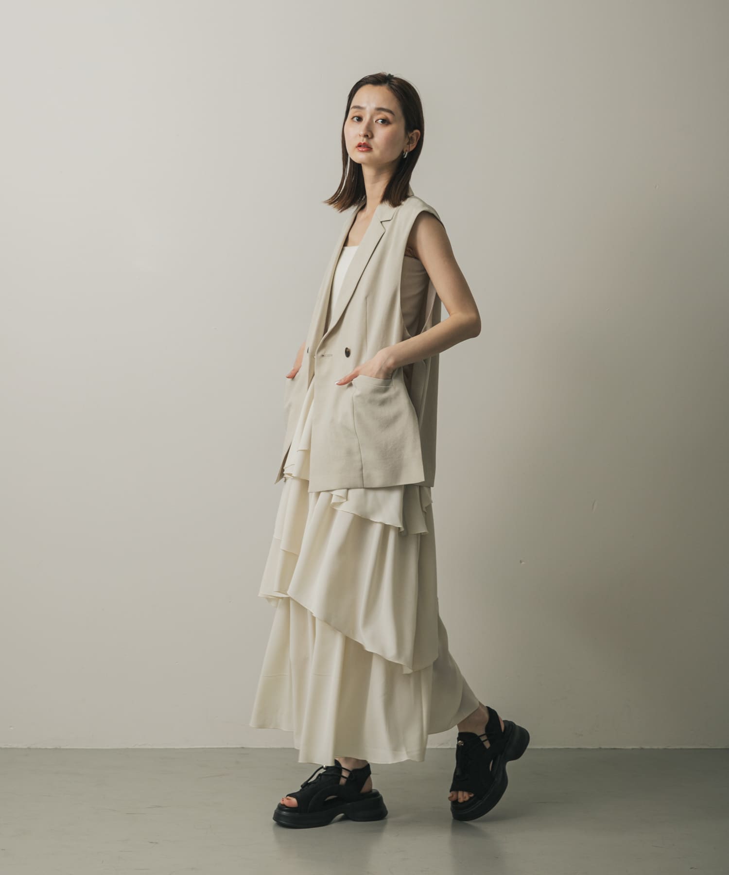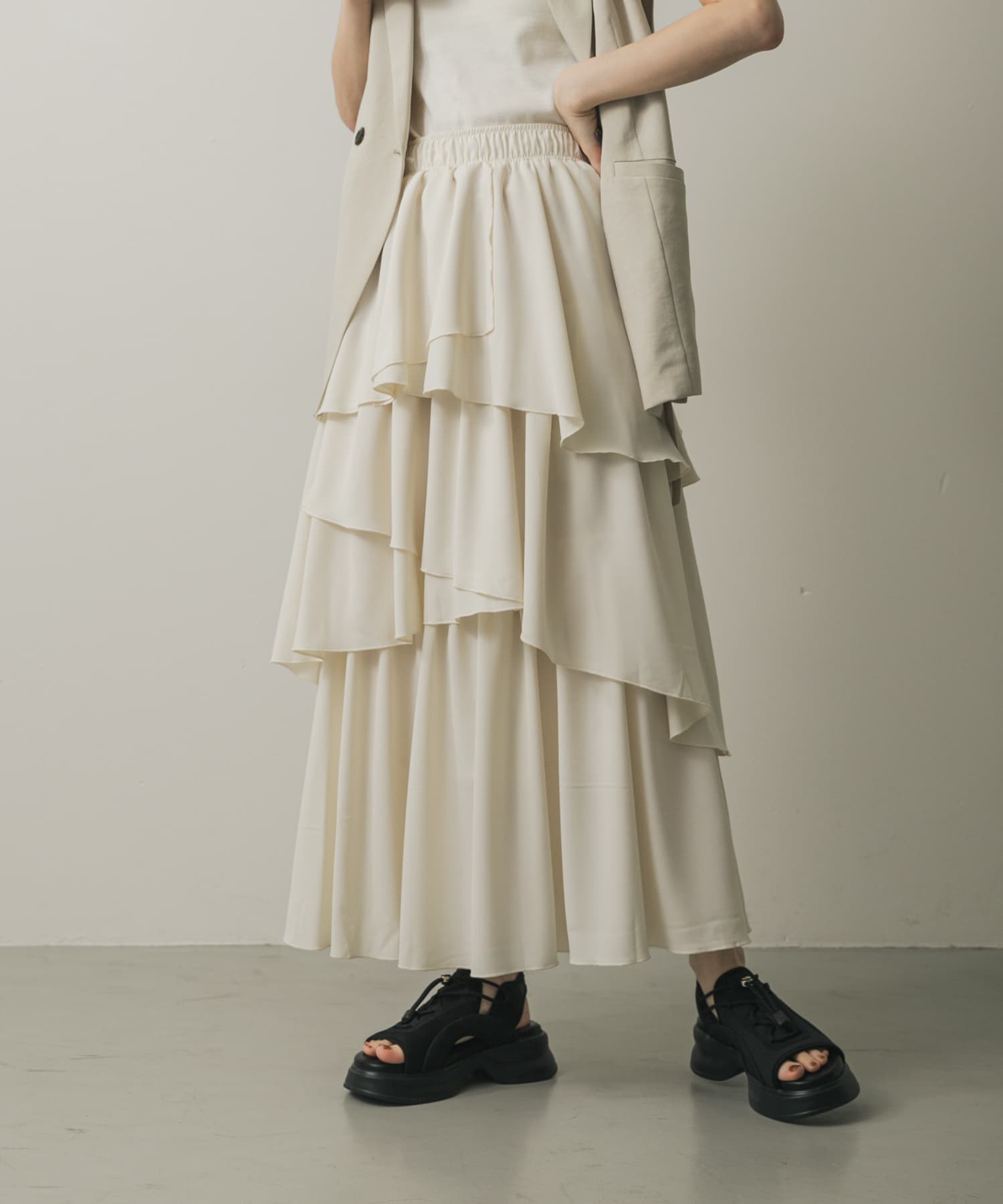 不對稱層次蛋糕裙IVORY