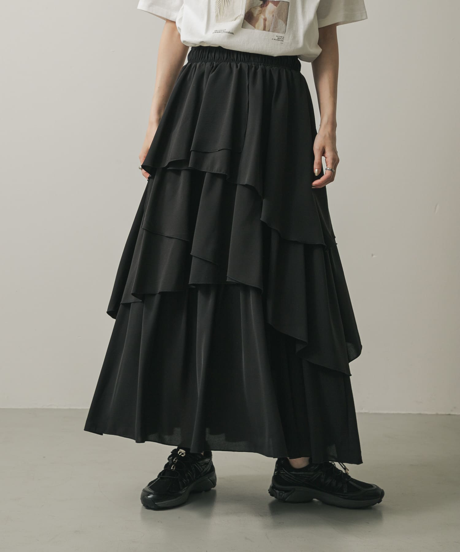 不對稱層次蛋糕裙BLACK