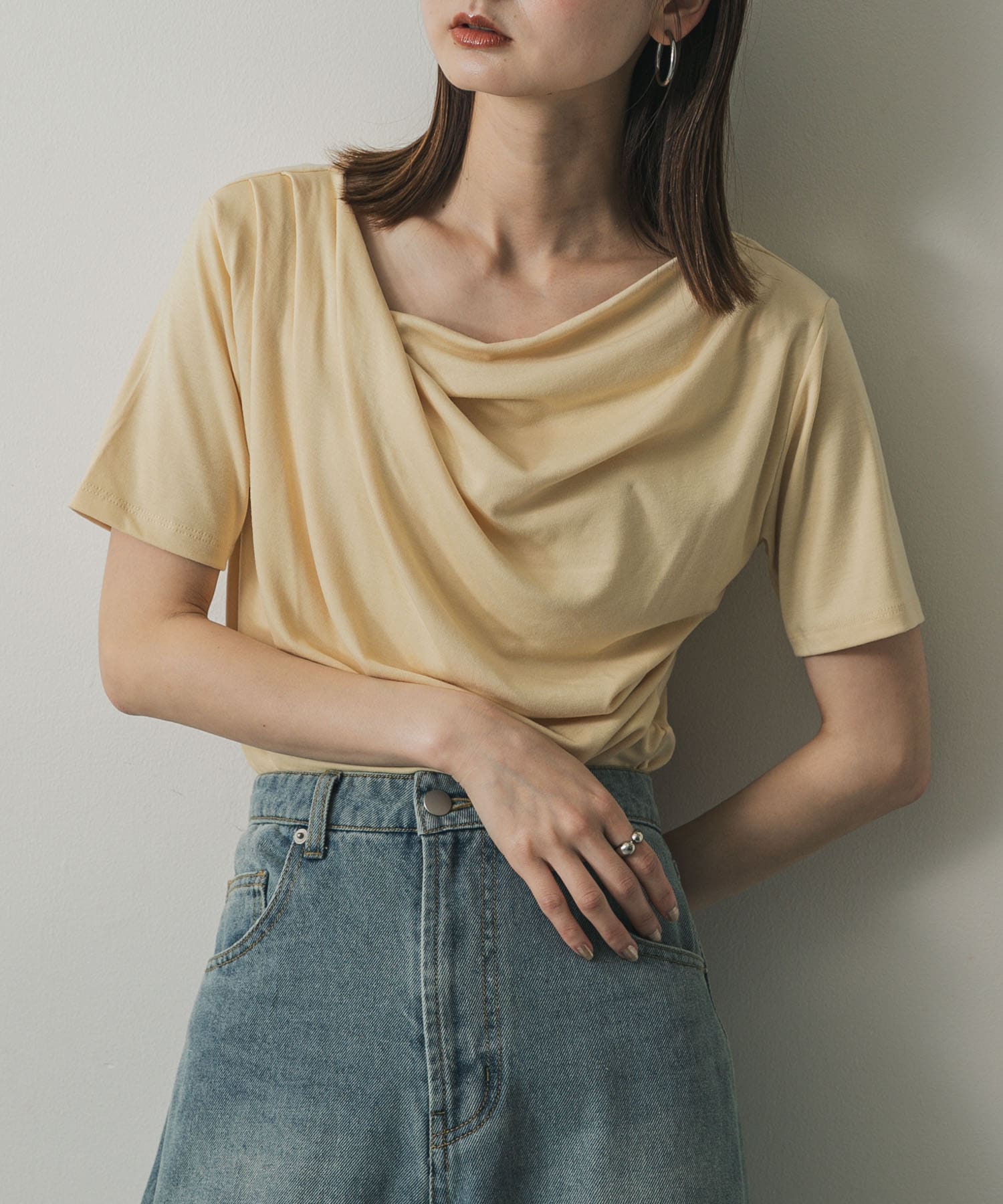 不對稱垂墜短袖上衣BEIGE