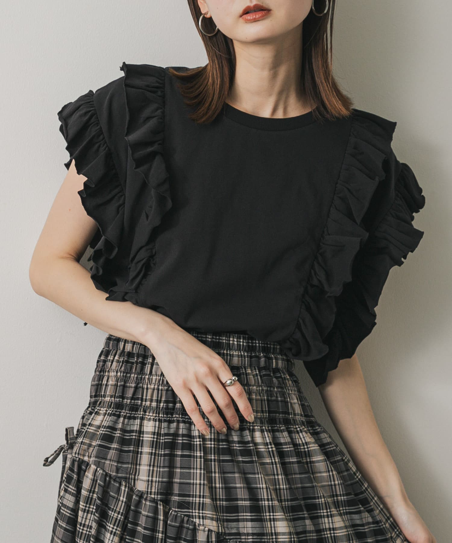 雙排荷葉邊設計上衣BLACK