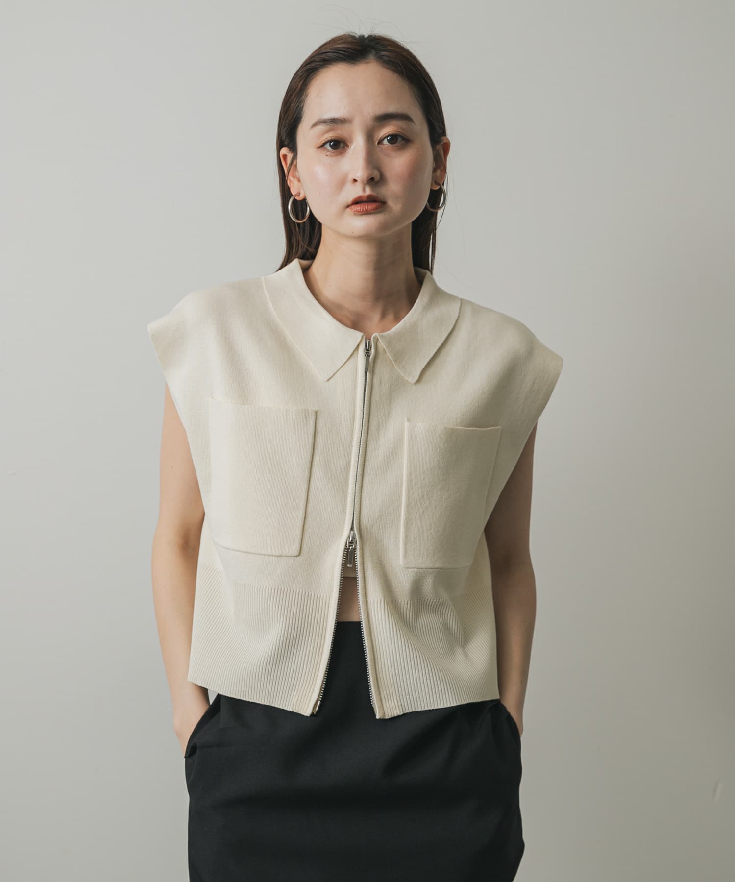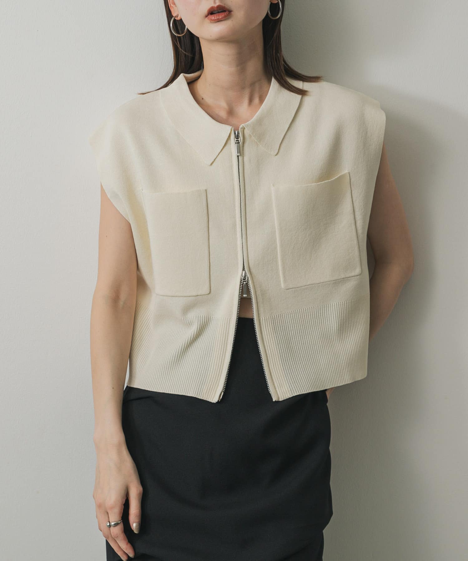 前拉鍊有領針織衫IVORY