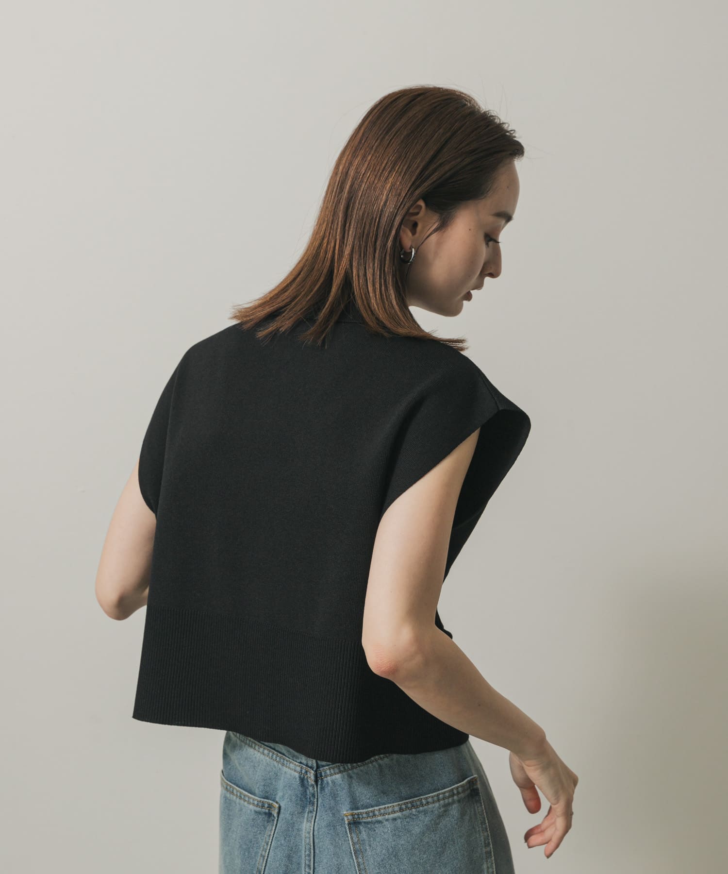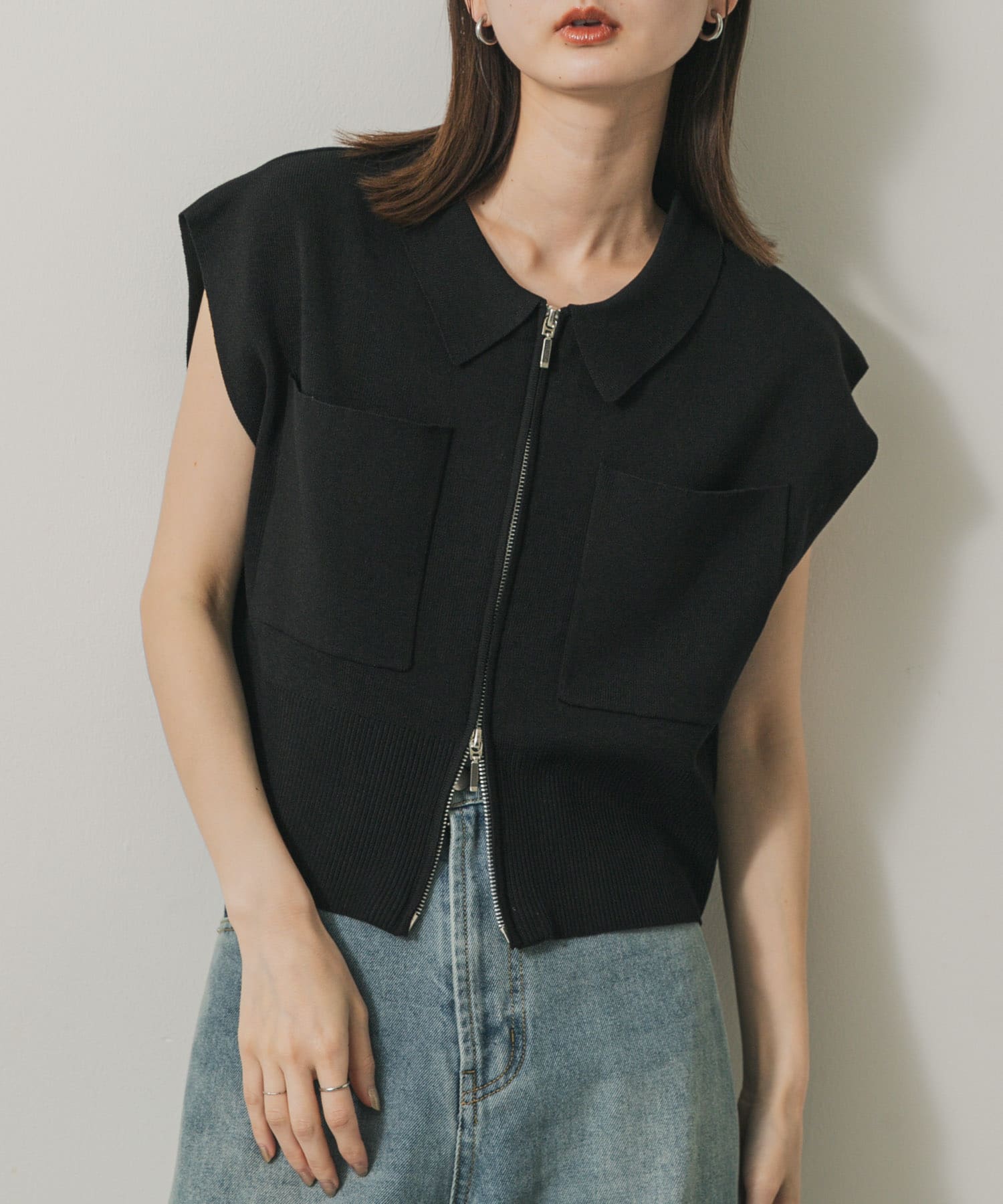 前拉鍊有領針織衫BLACK