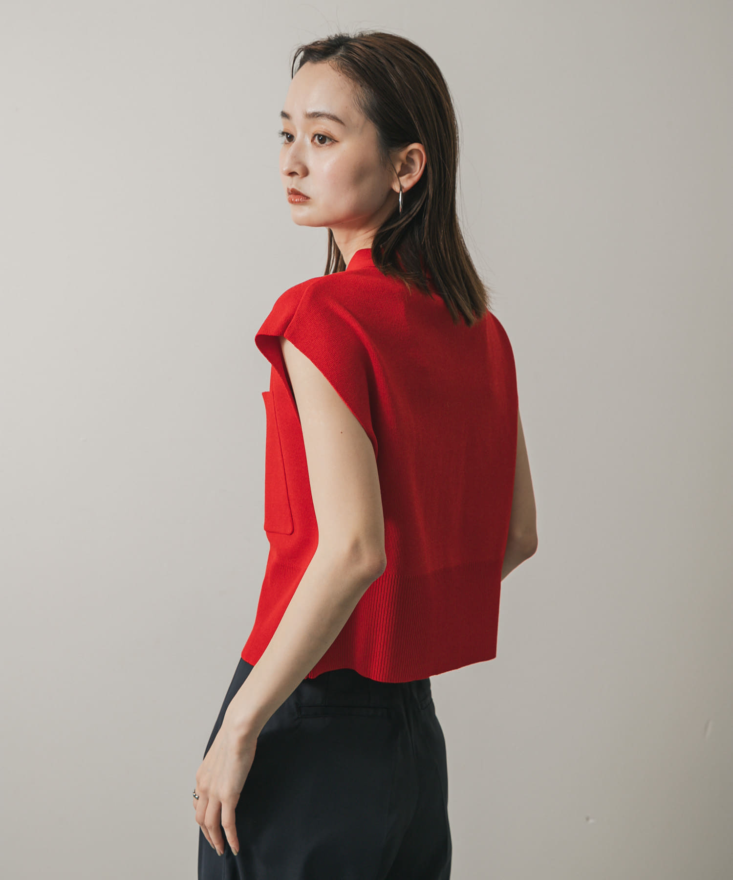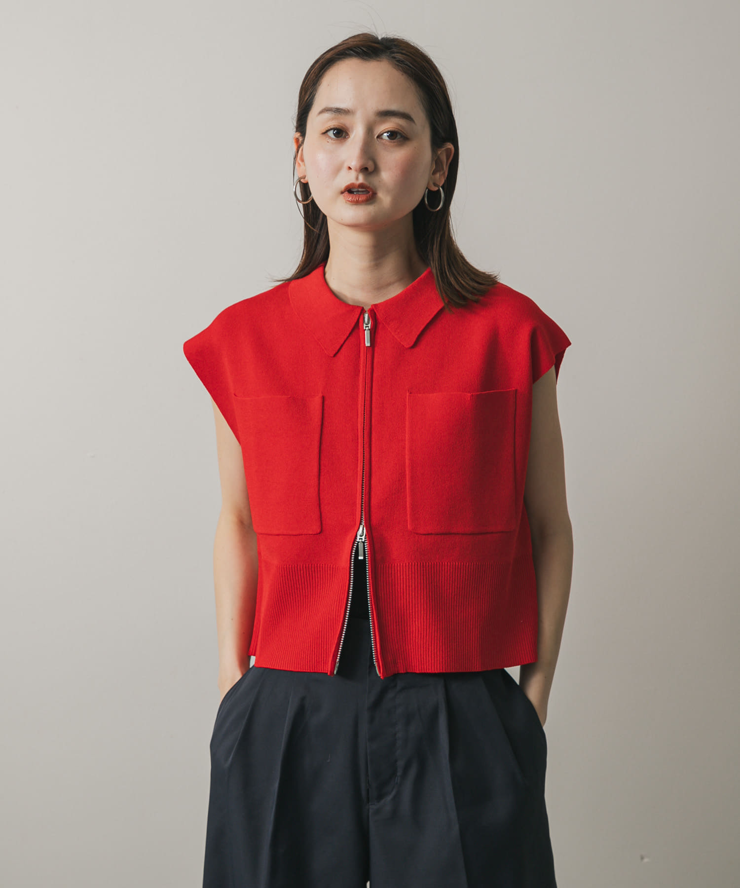 前拉鍊有領針織衫RED