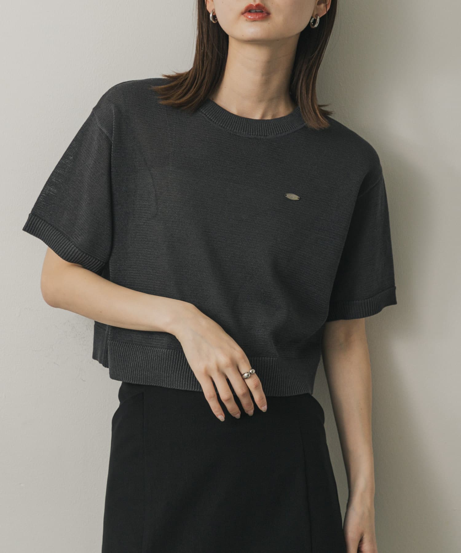 圓領短版針織上衣CHARCOAL GRAY