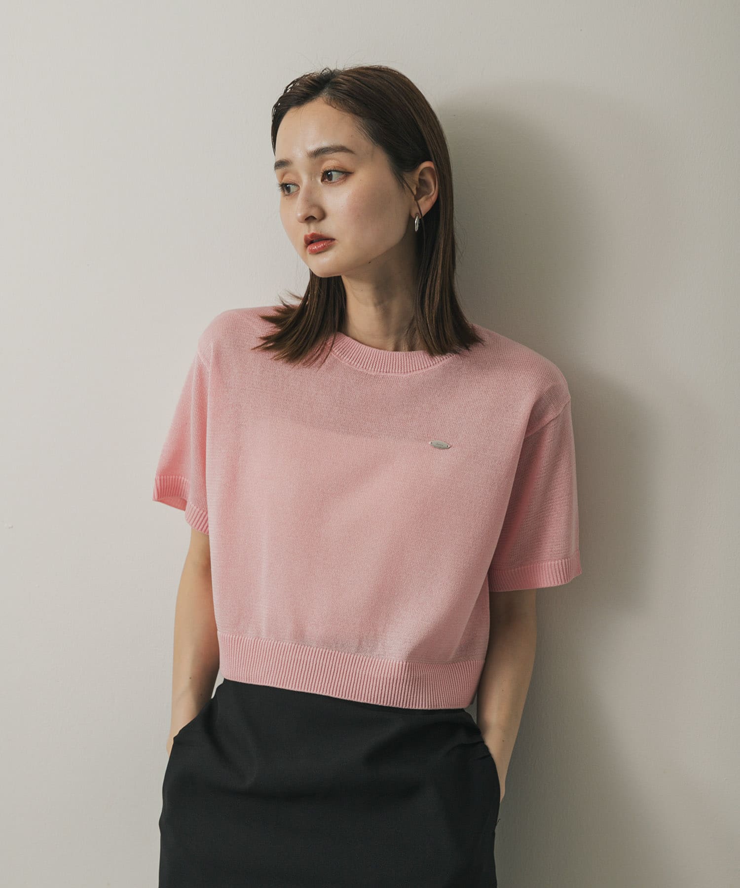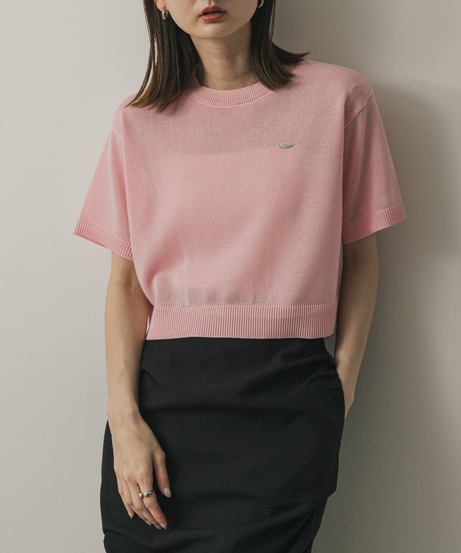 圓領短版針織上衣PINK