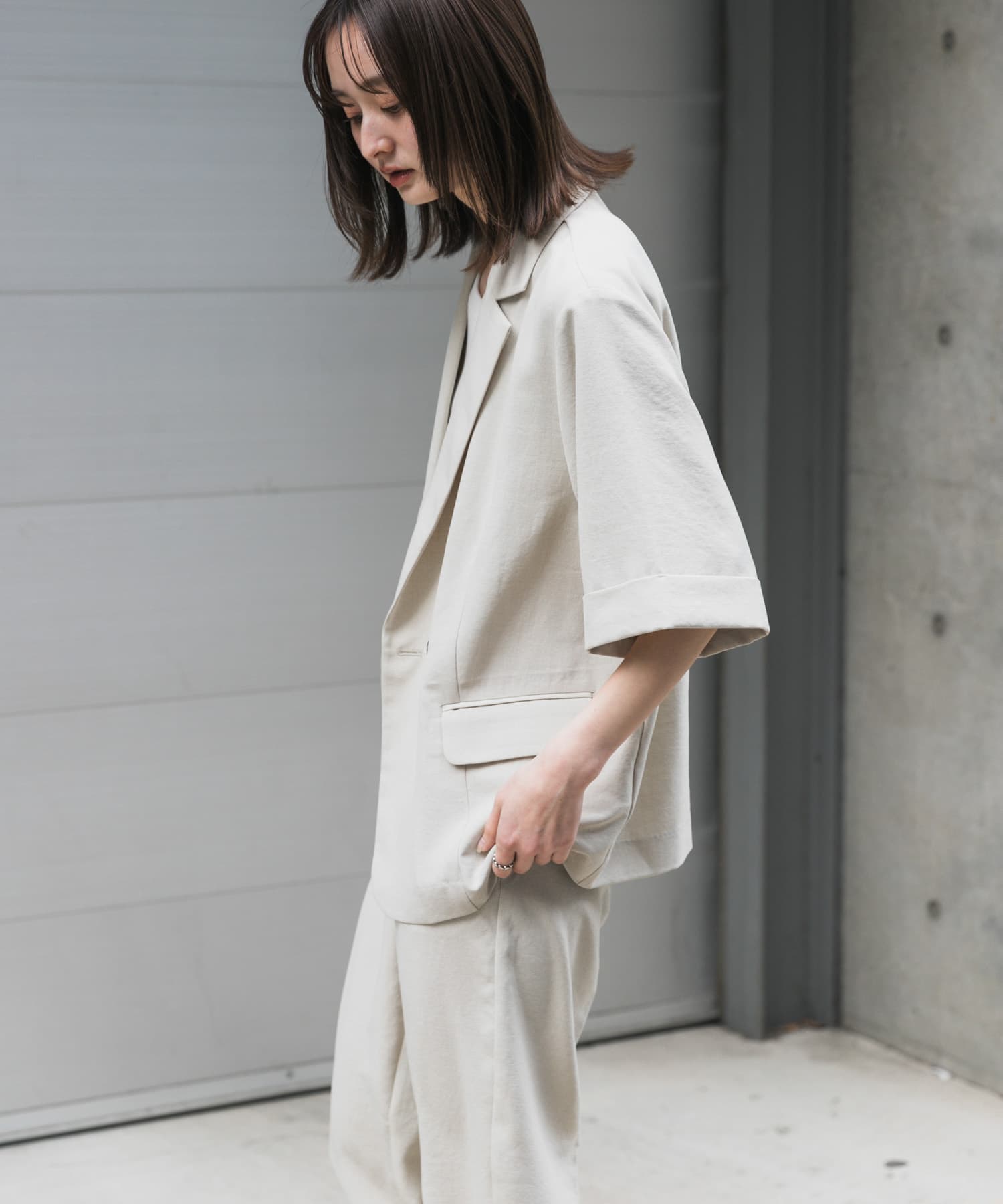 『UR TECH DRYLUXE』仿亞麻西裝外套LIGHT BEIGE