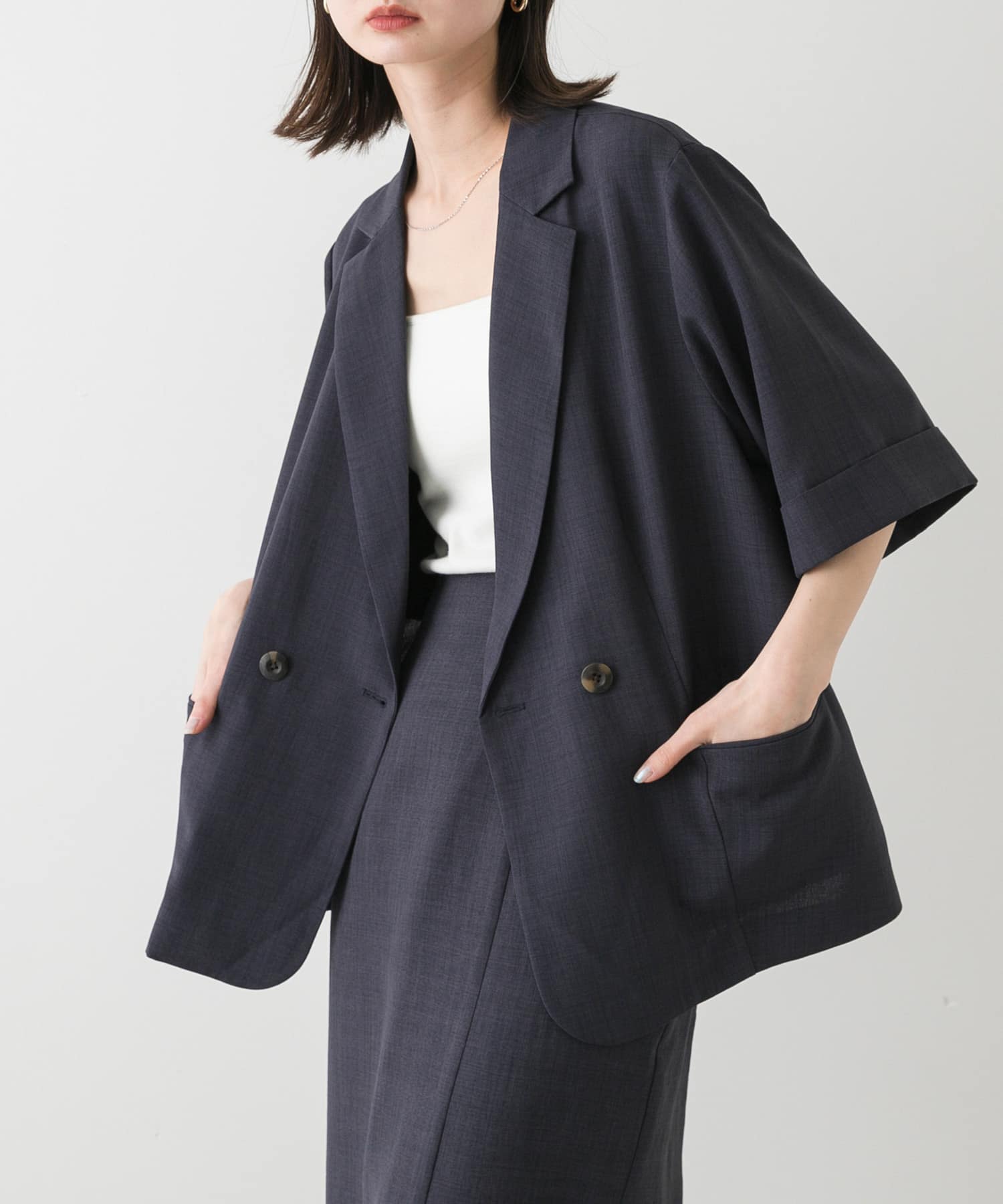 『UR TECH DRYLUXE』仿亞麻西裝外套NAVY
