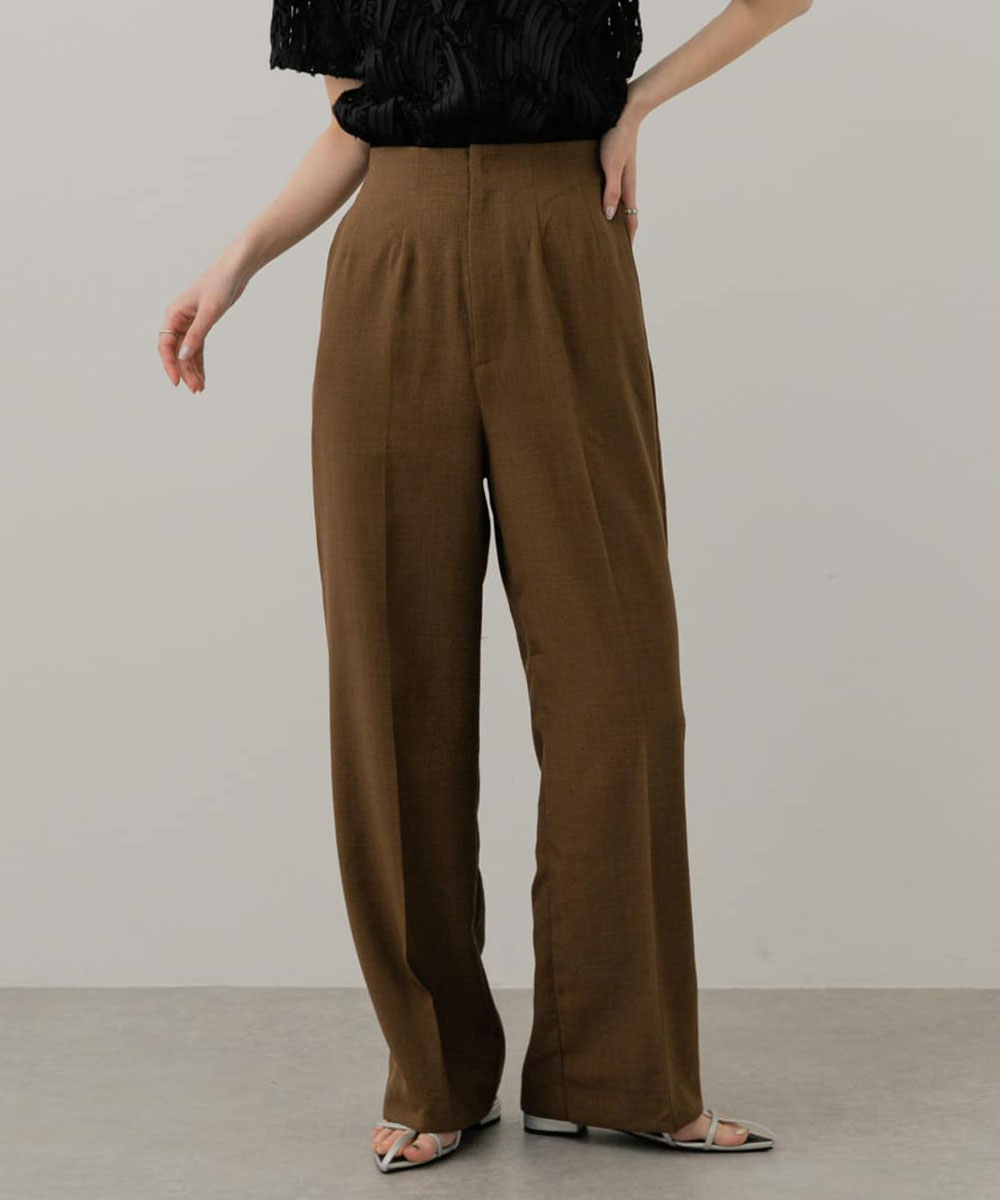 『UR TECH DRYLUXE』仿亞麻高腰寬褲BROWN