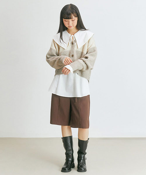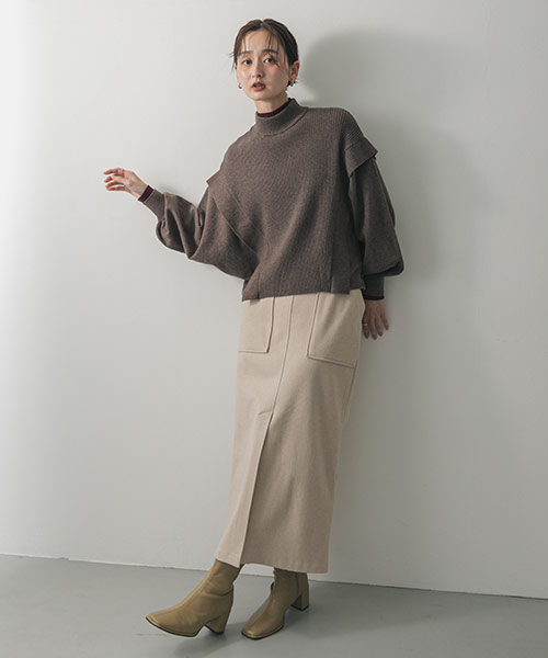 『可機洗』荷葉蕾絲喇叭袖針織上衣