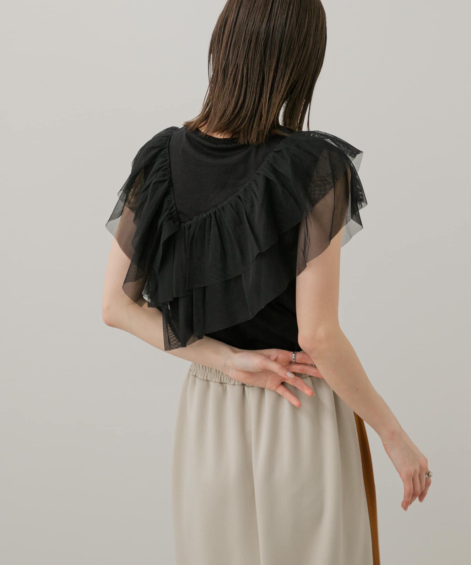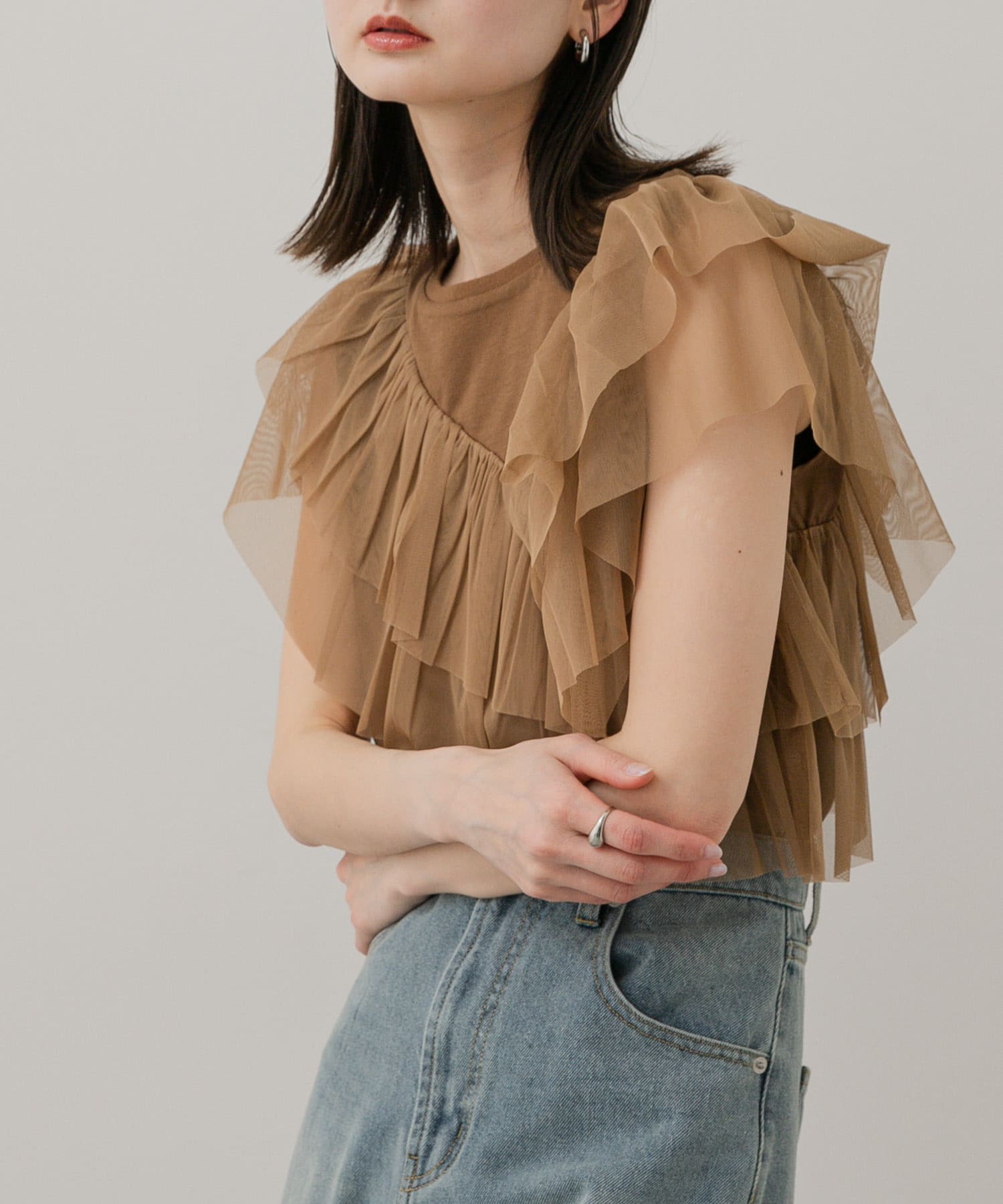 紗質荷葉邊上衣