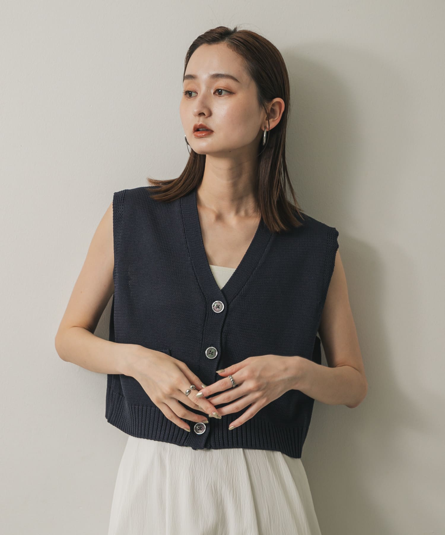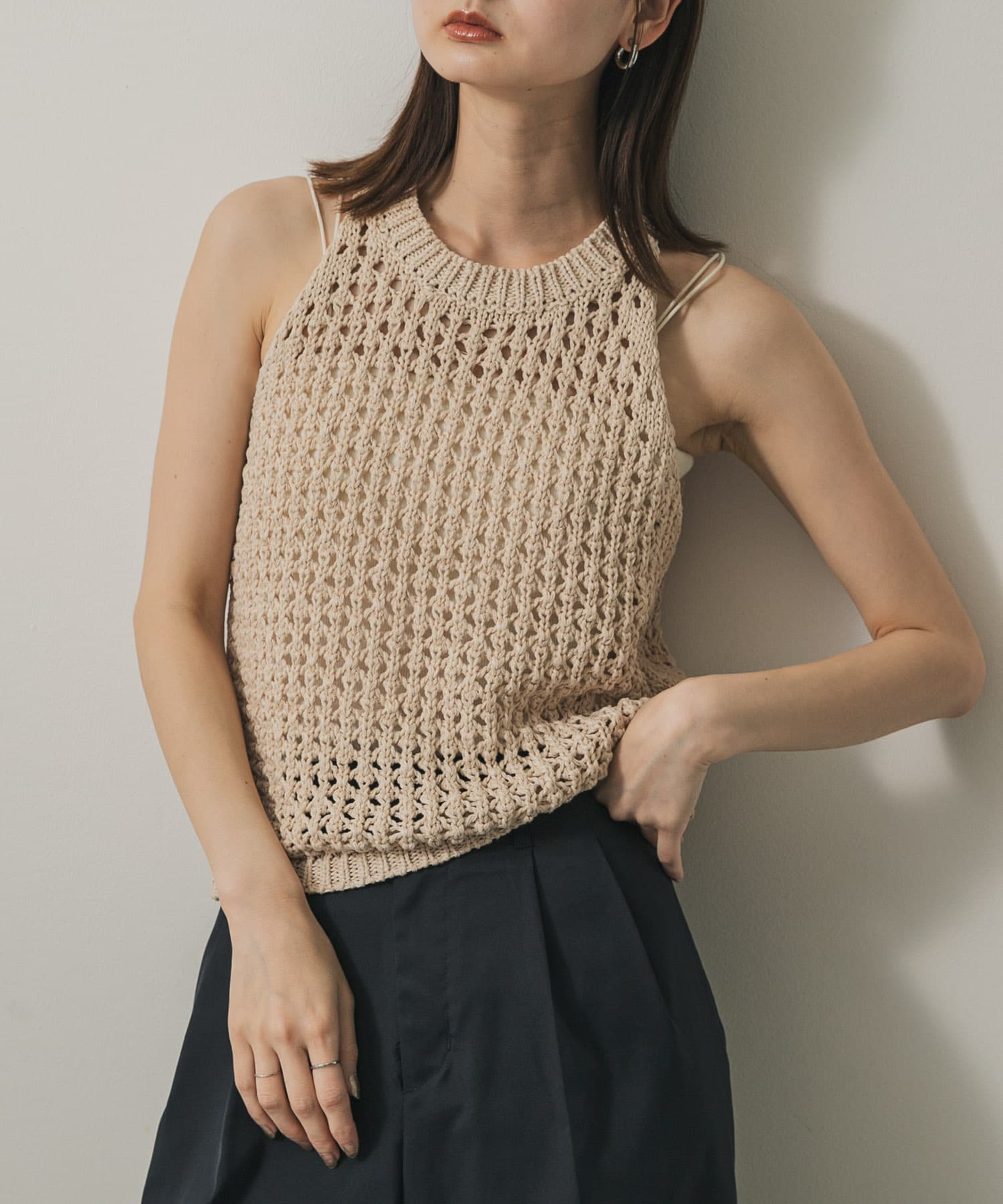 網眼削肩針織背心