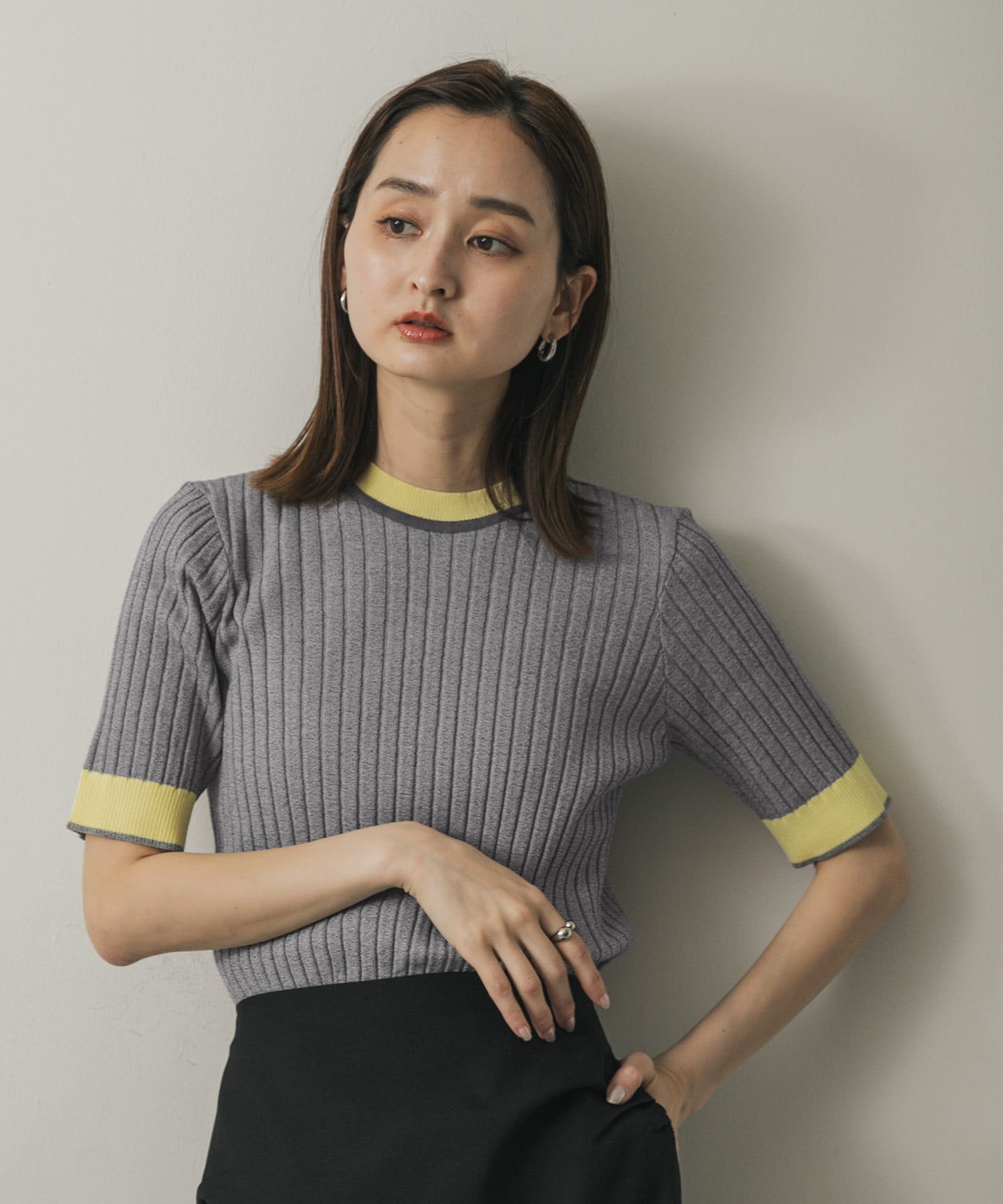撞色滾邊針織上衣