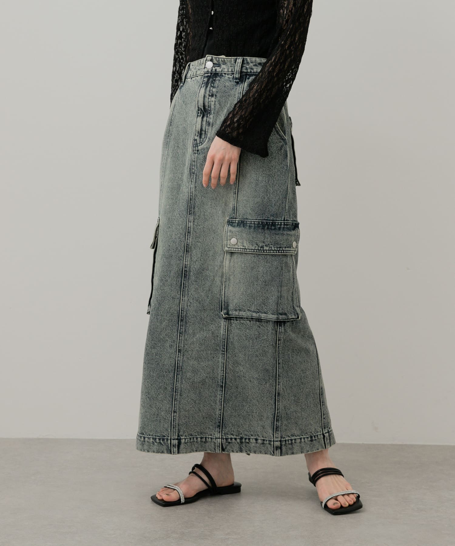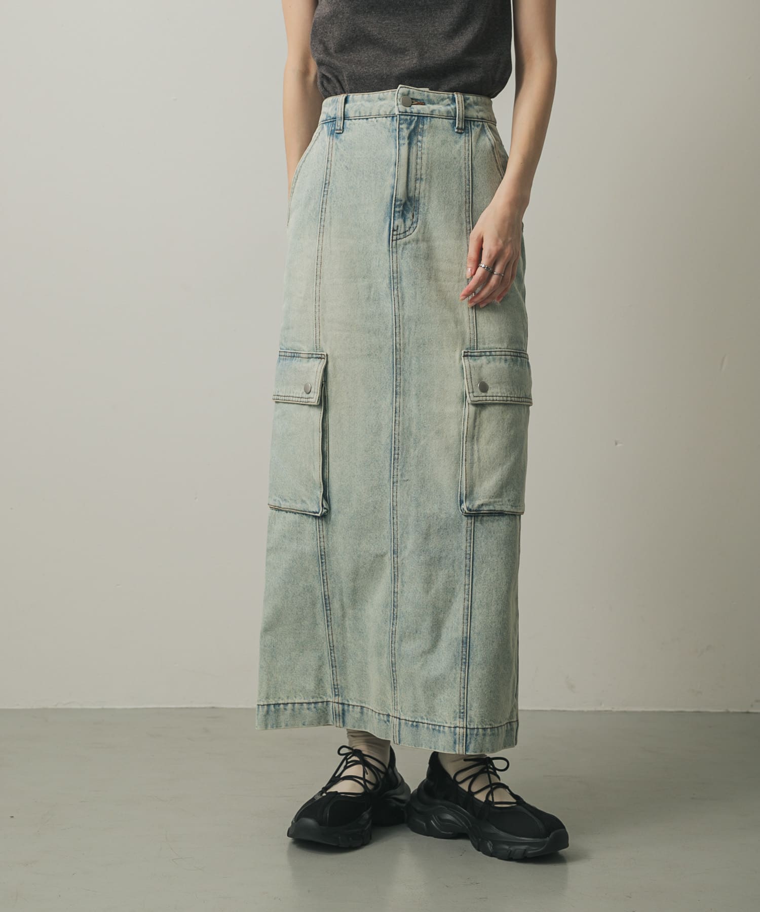 大口袋工裝丹寧長裙